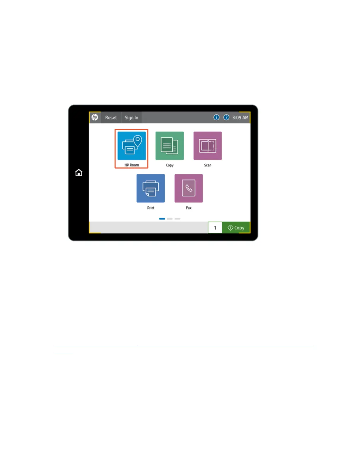 1. On the printer control panel, select the HP Roam button to open the HP Roam Embedded Printer App.