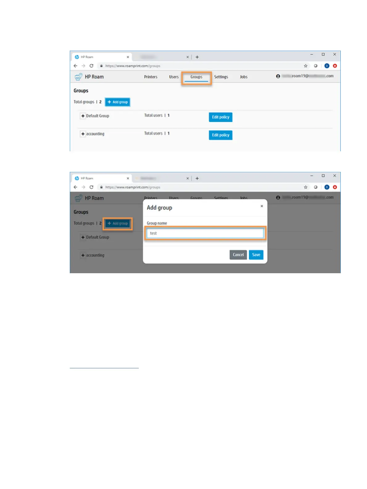 Groups can be created within the HP Roam web portal to enable policy enforcement and set permissions for