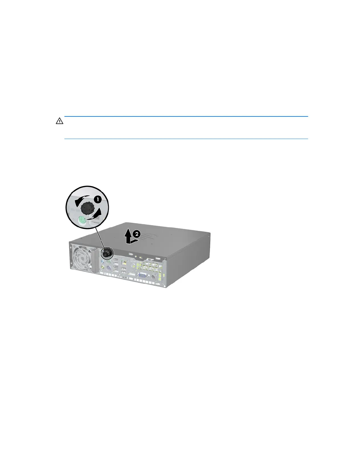 6. Loosen the thumbscrew on the rear of the computer (1), slide the access panel toward the rear of