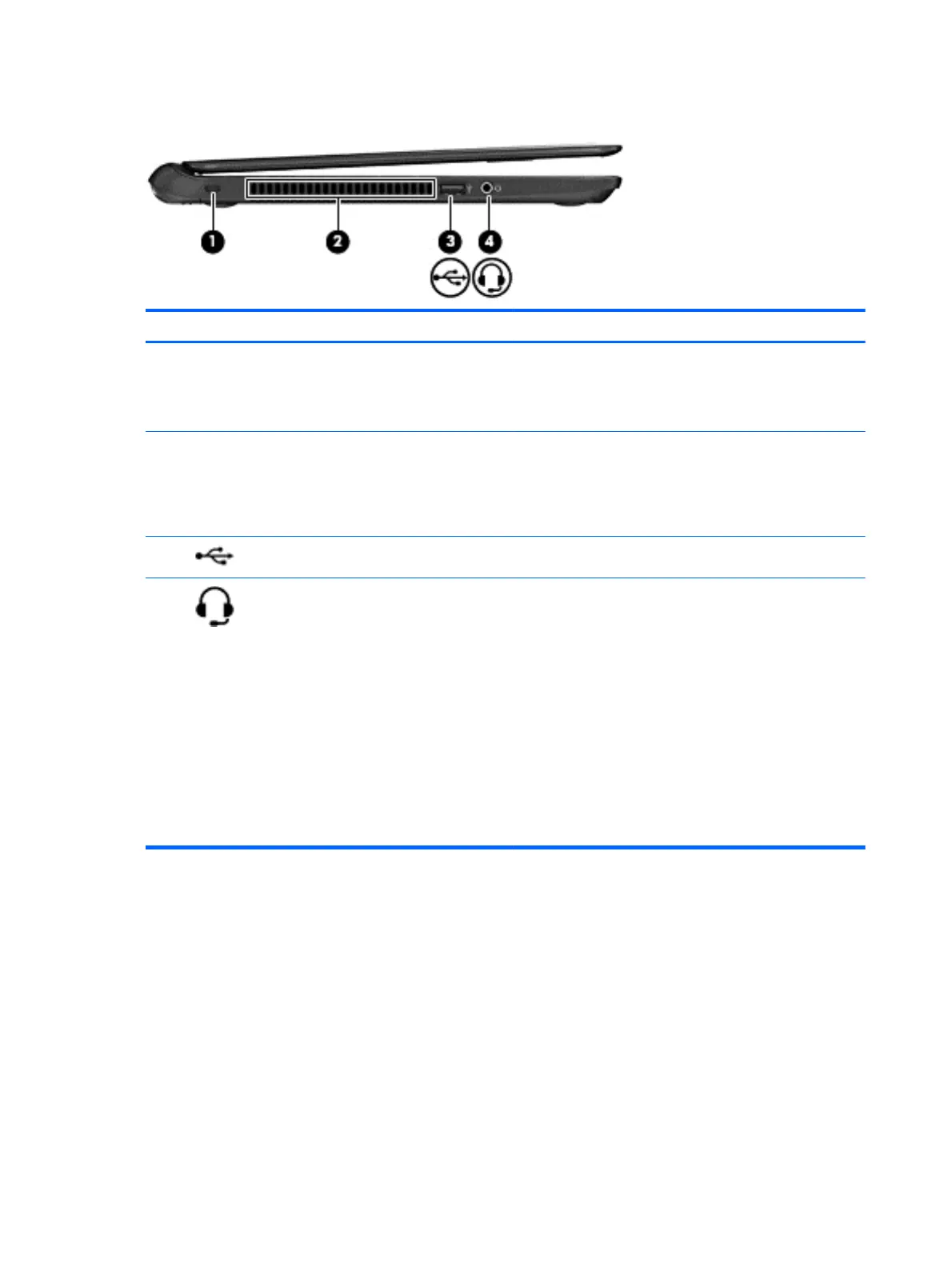 (1) Security cable slot Attaches an optional security cable to the computer.