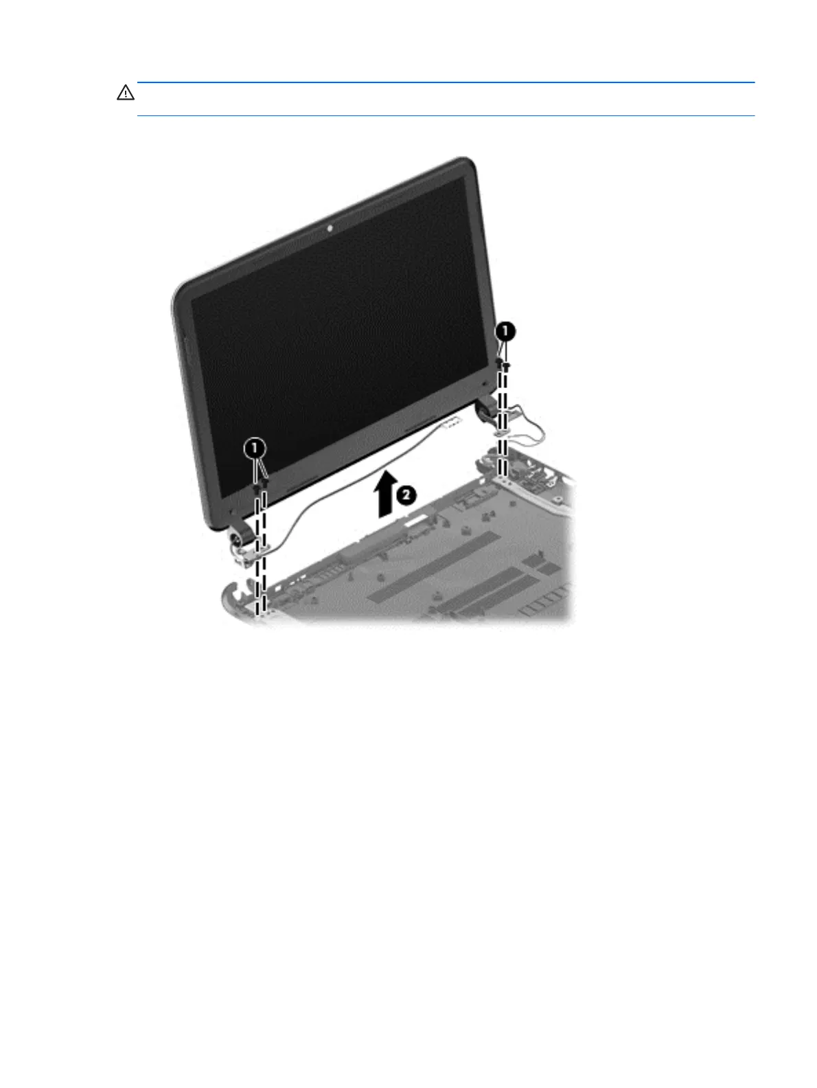 1. Remove the four Phillips screws from the display hinges (1) and lift the display assembly (2).