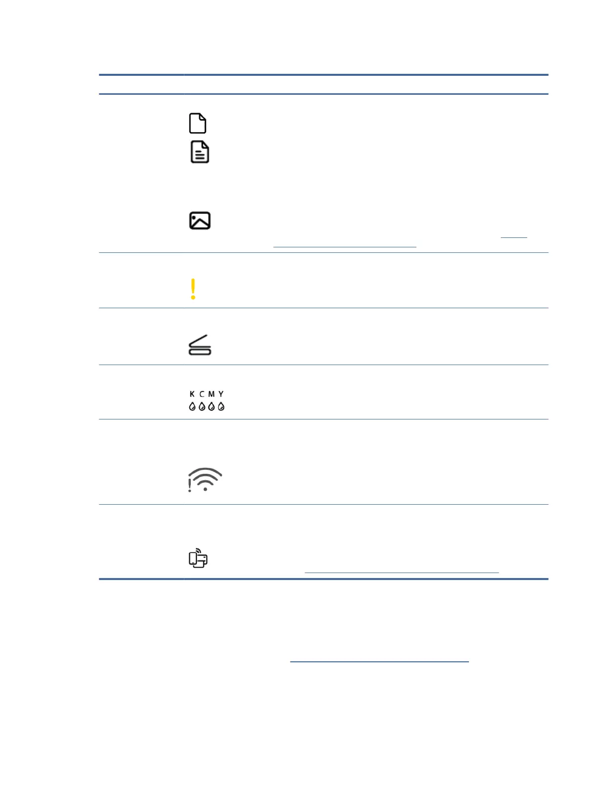 ● Blank Document icon: Indicates the status of paper in the input tray or any