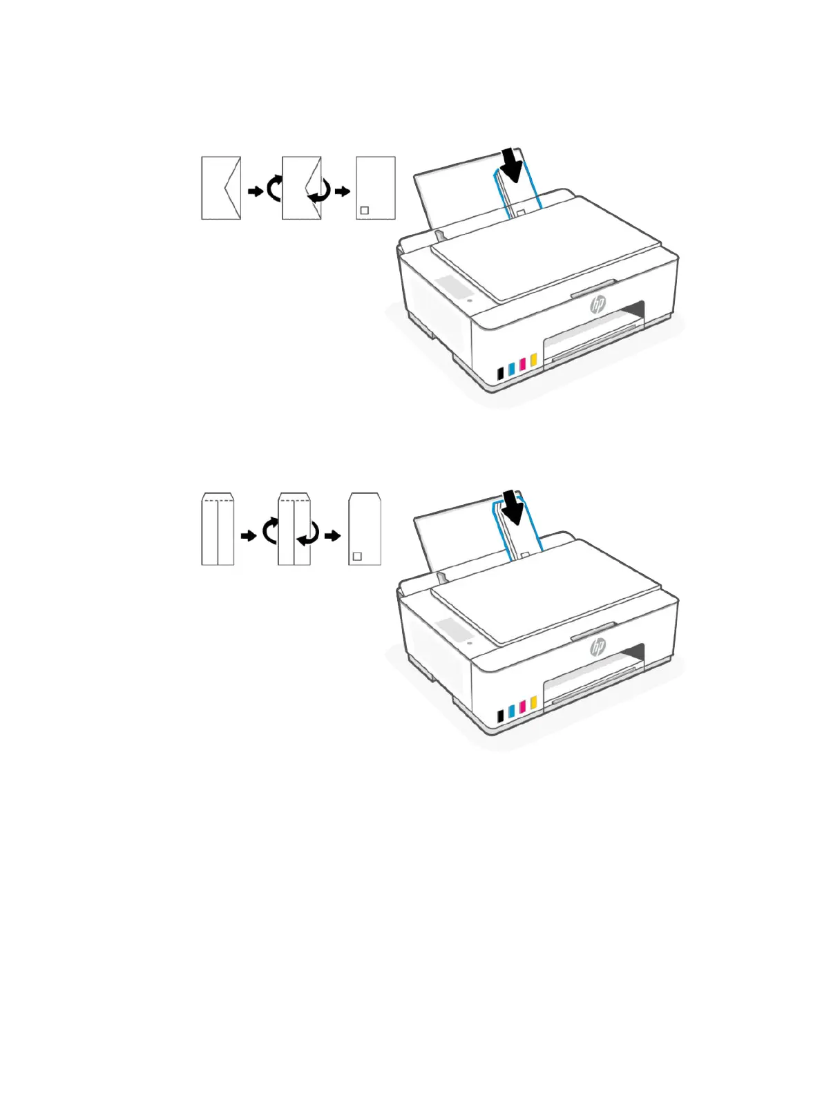b. For envelopes with a ap on the short edge, insert vertically with the ap on top and facing down.