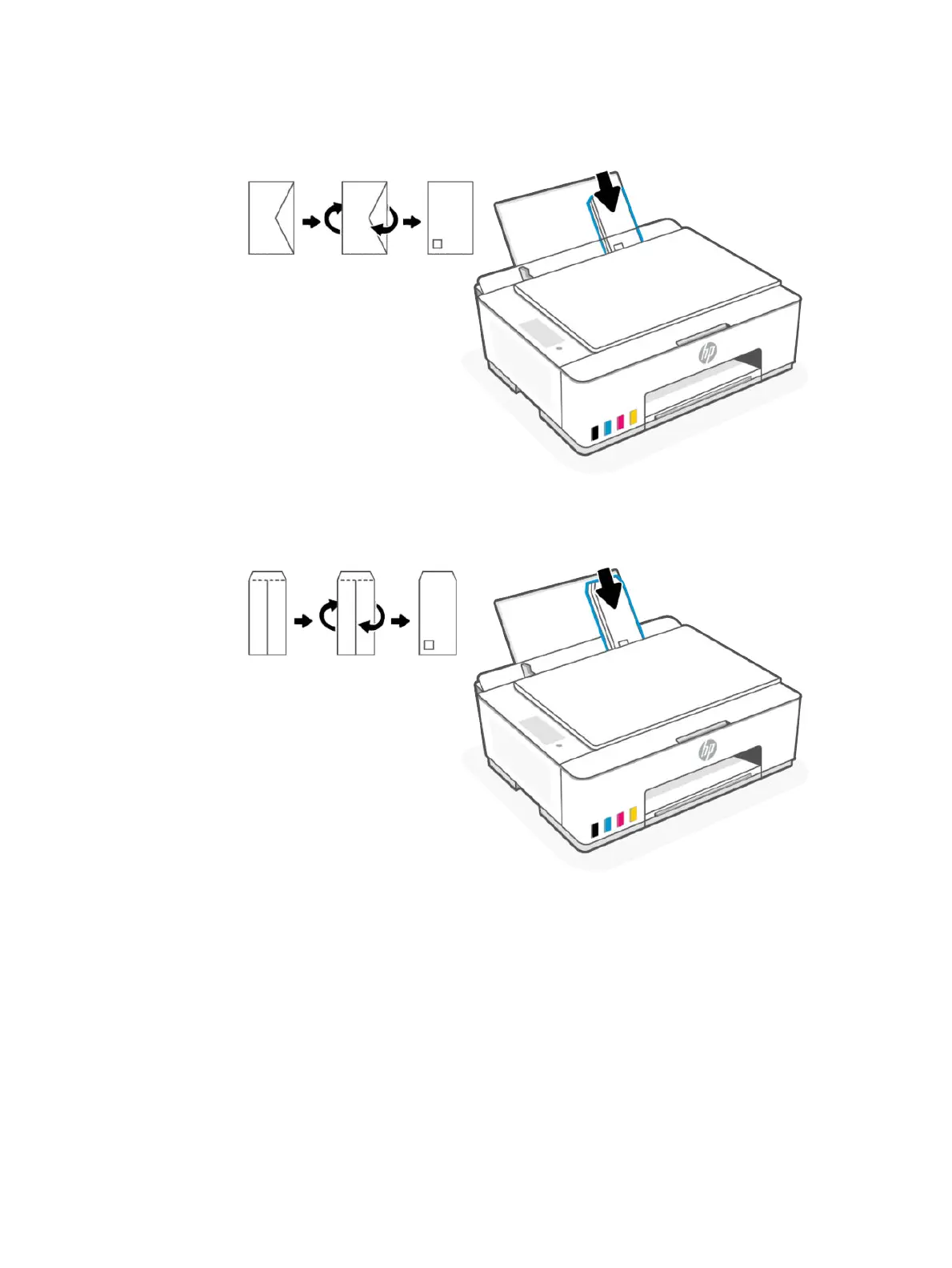 b. For envelopes with a ap on the short edge, insert vertically with the ap on top and facing down.