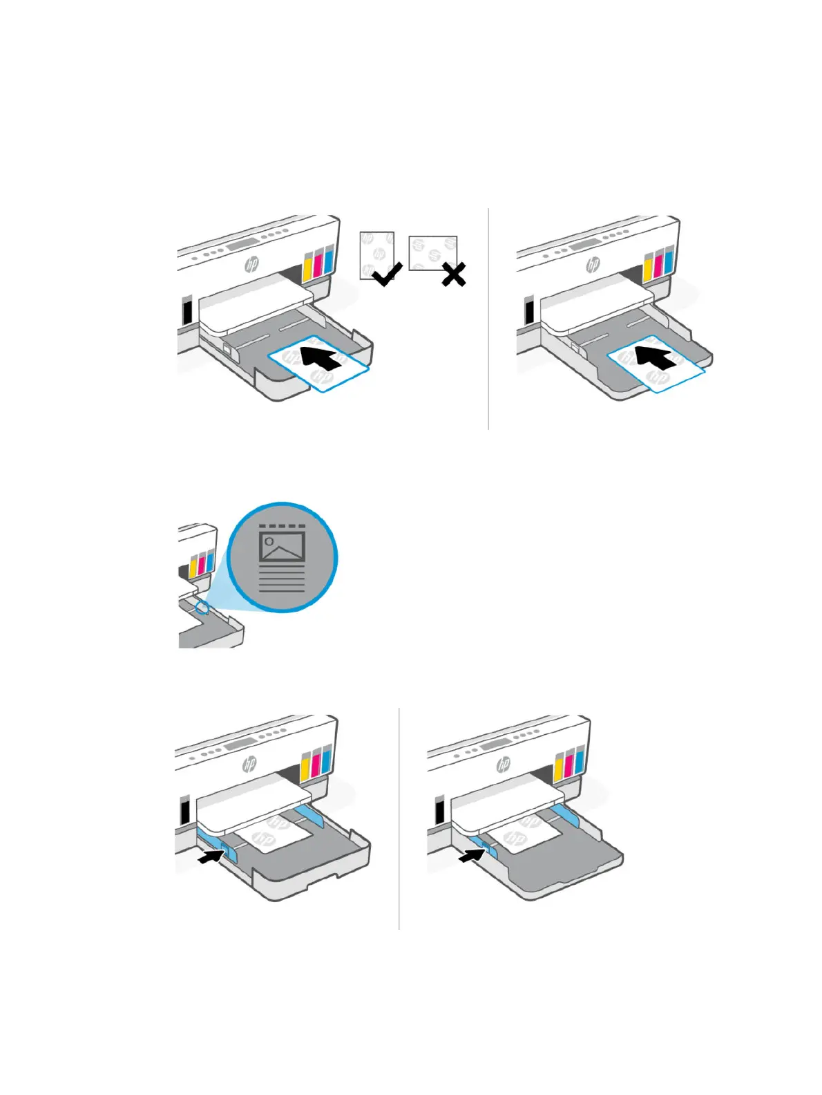 3. Insert the cards or photo paper in portrait orientation and with the side to be printed facing down.