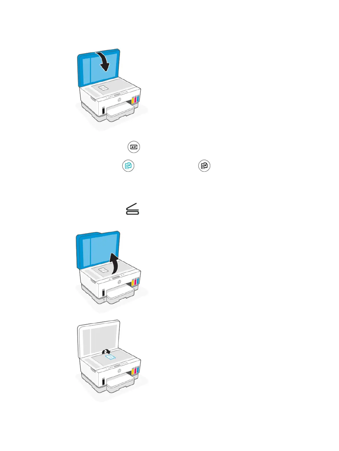 6. When the Open Lid light blinks or lights up, open the scanner lid, ip the card on the scanner glass,