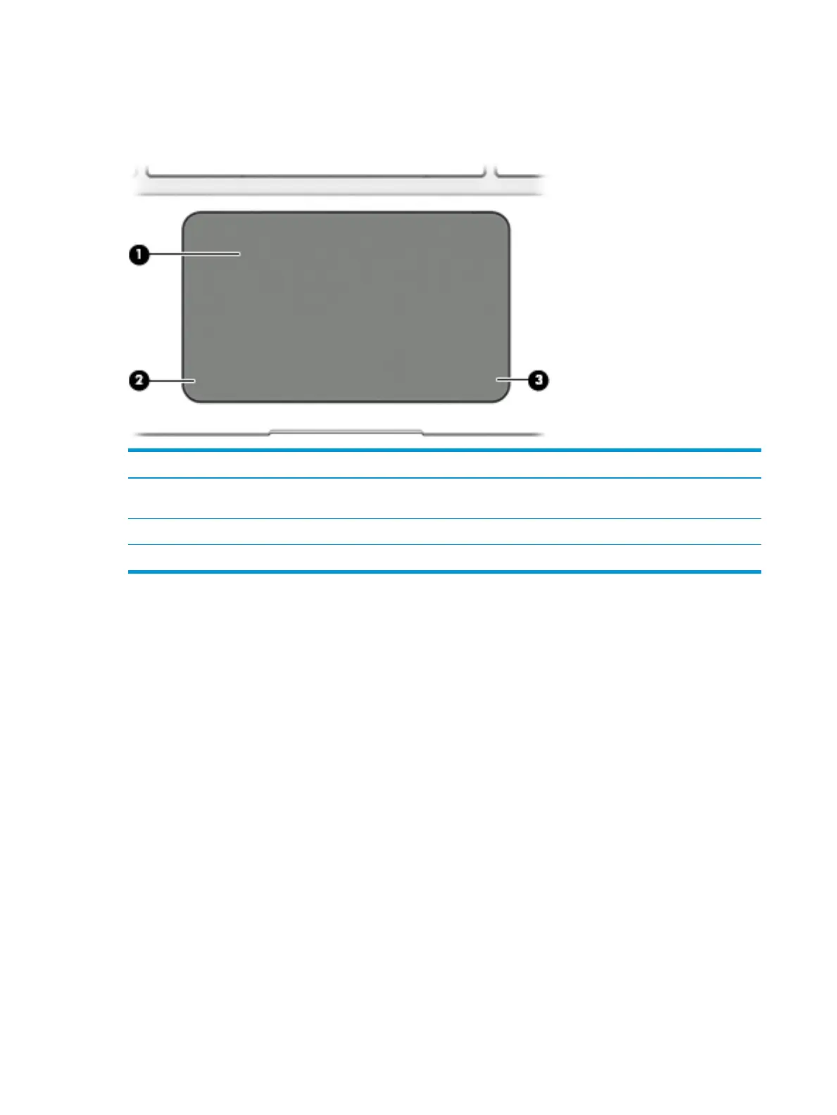 (1) TouchPad zone Reads your nger gestures to move the pointer or activate items