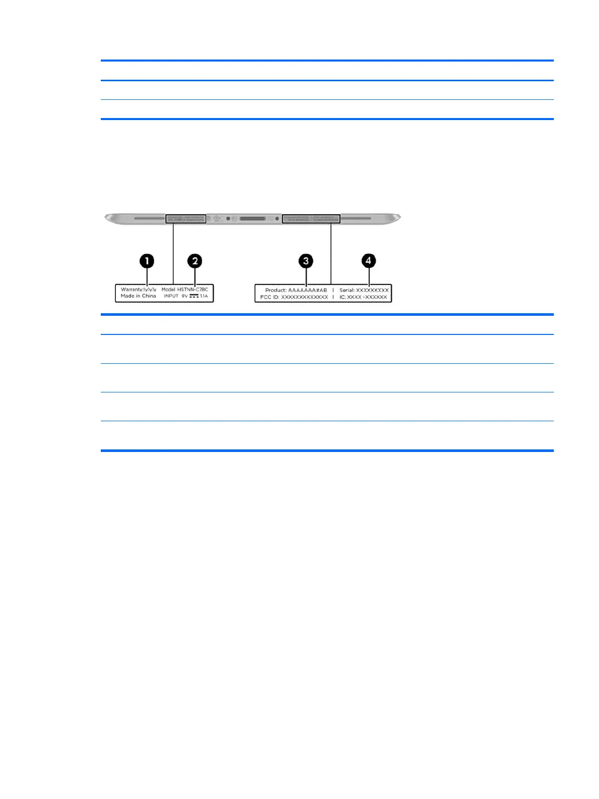 When ordering parts or requesting information, provide the tablet serial number and model number provided