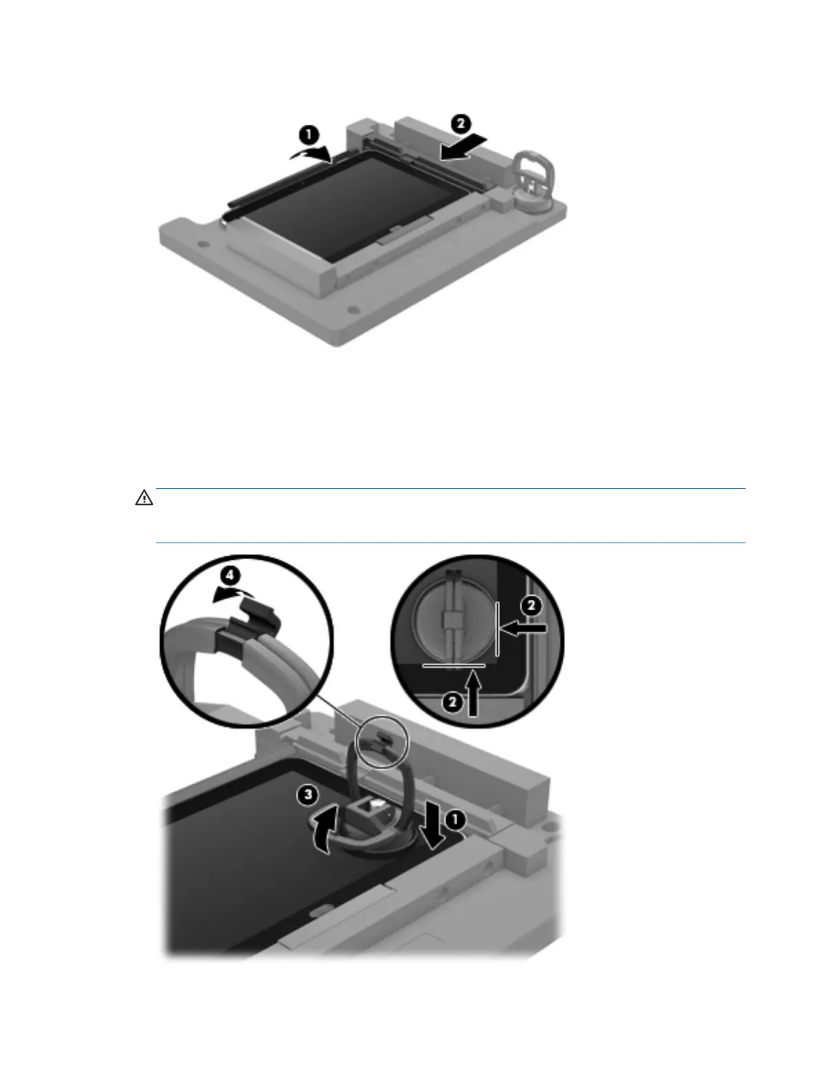 releasing the display assembly. Failure to follow this caution can result in damage to the tablet