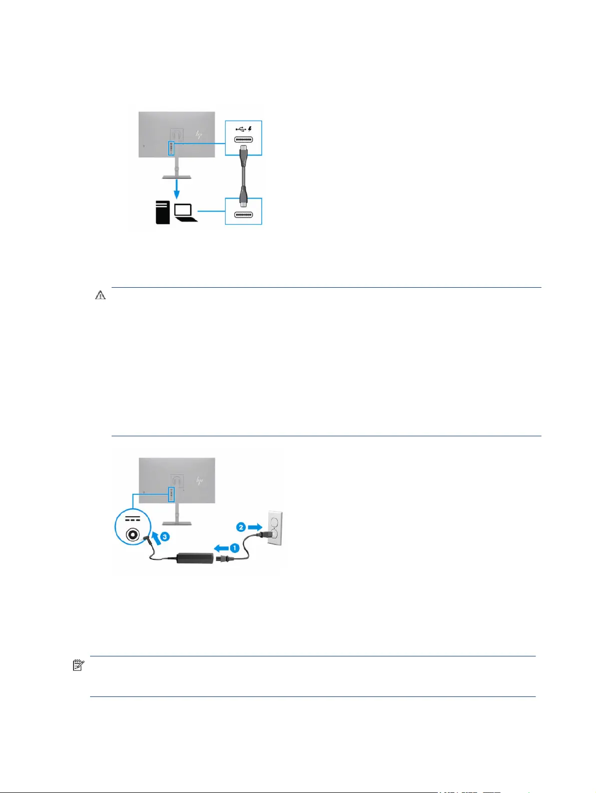 Sluit het ene uiteinde van de USB Type-C-kabel aan de USB Type-C-poort van de monitor en