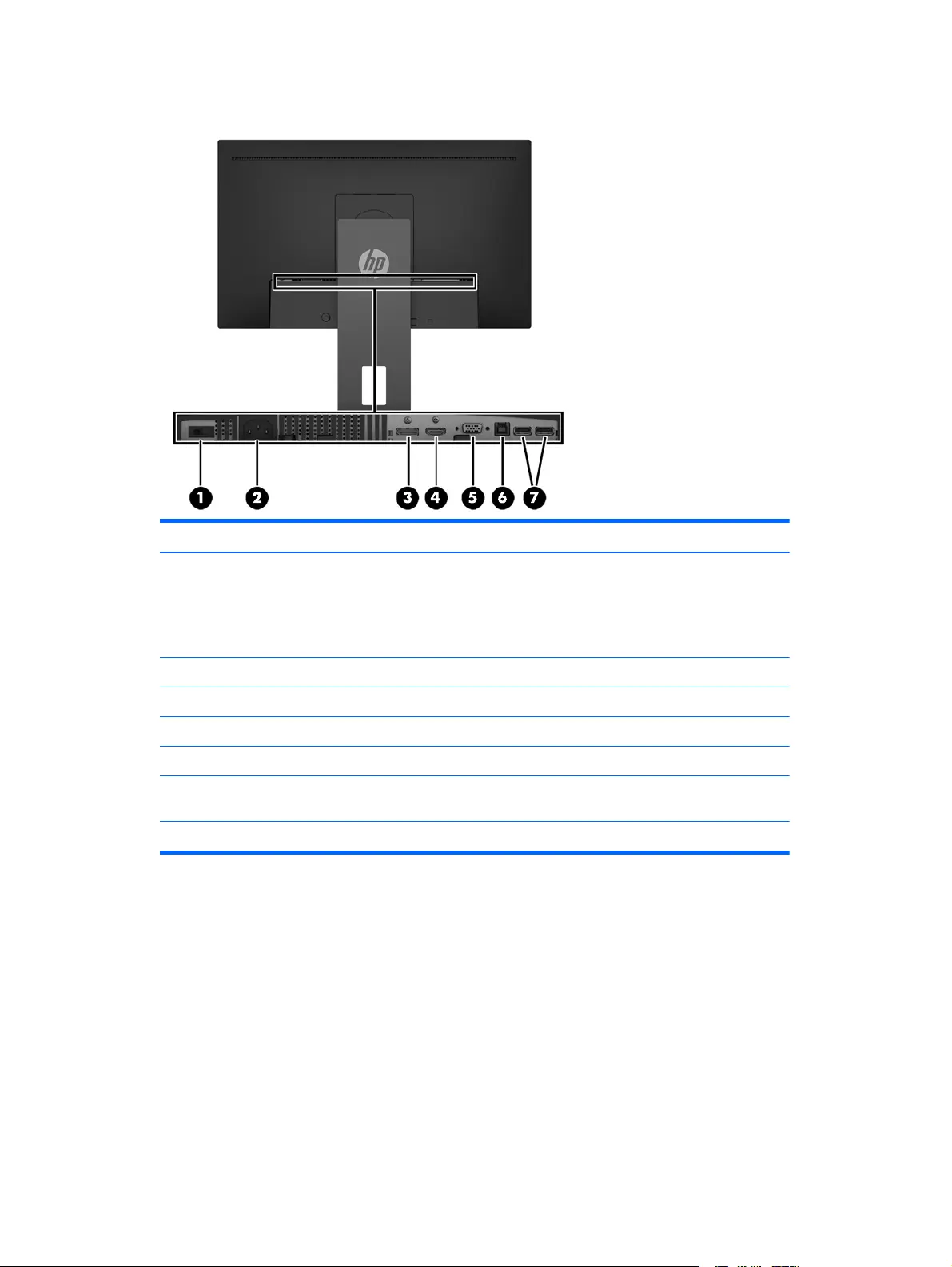 3 DisplayPort-connector Verbindt de DisplayPort-kabel met de monitor.