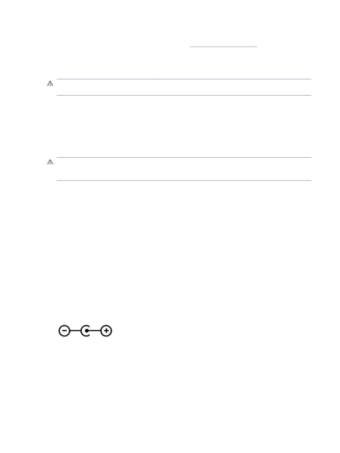 Het diagram geeft de gelijkstroomstekker van de externe HP voeding weer.
