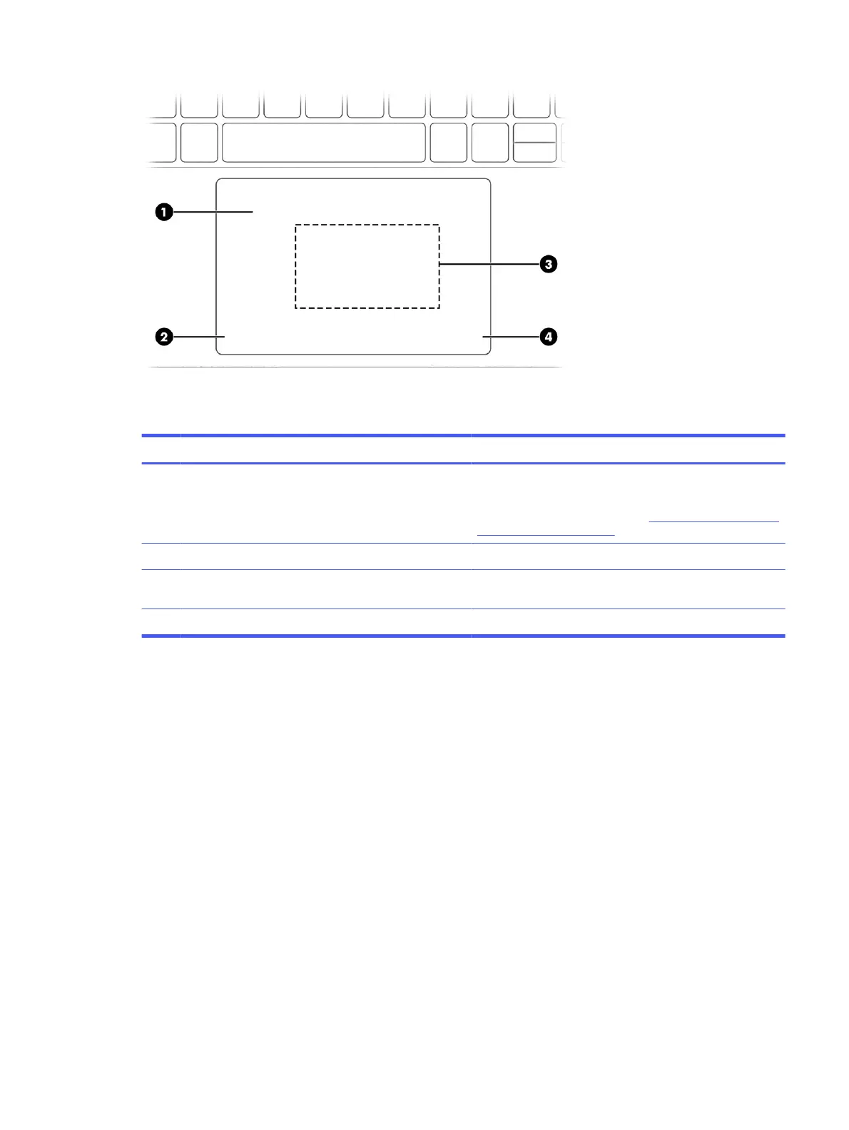 (1) Touchpad zone Reads your finger gestures to move the pointer or activate