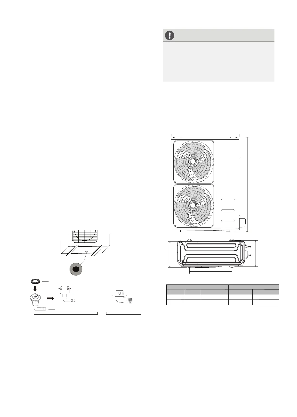 d'évacuation selon le type d'unité extérieure.