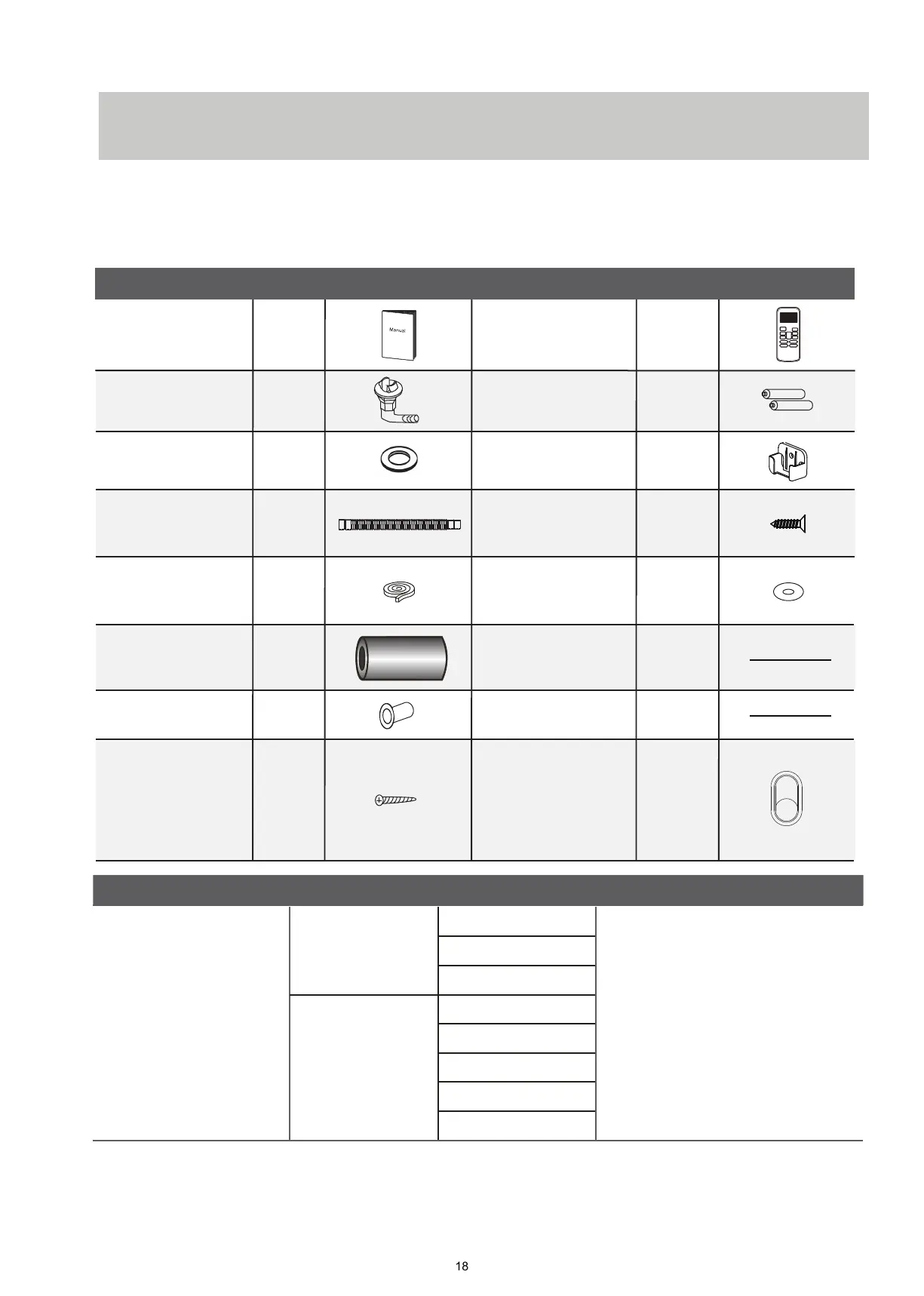 El sistema de aire acondicionado viene con los siguientes accesorios. Utilice todas las piezas y
