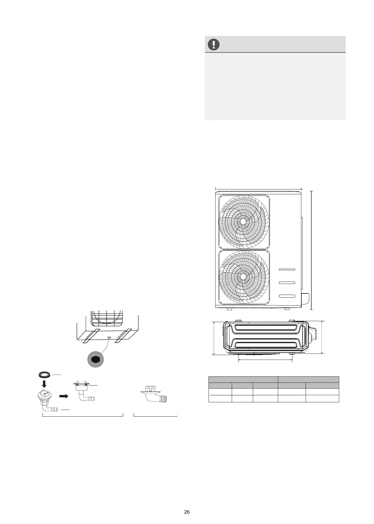 drenaje según el tipo de unidad exterior.