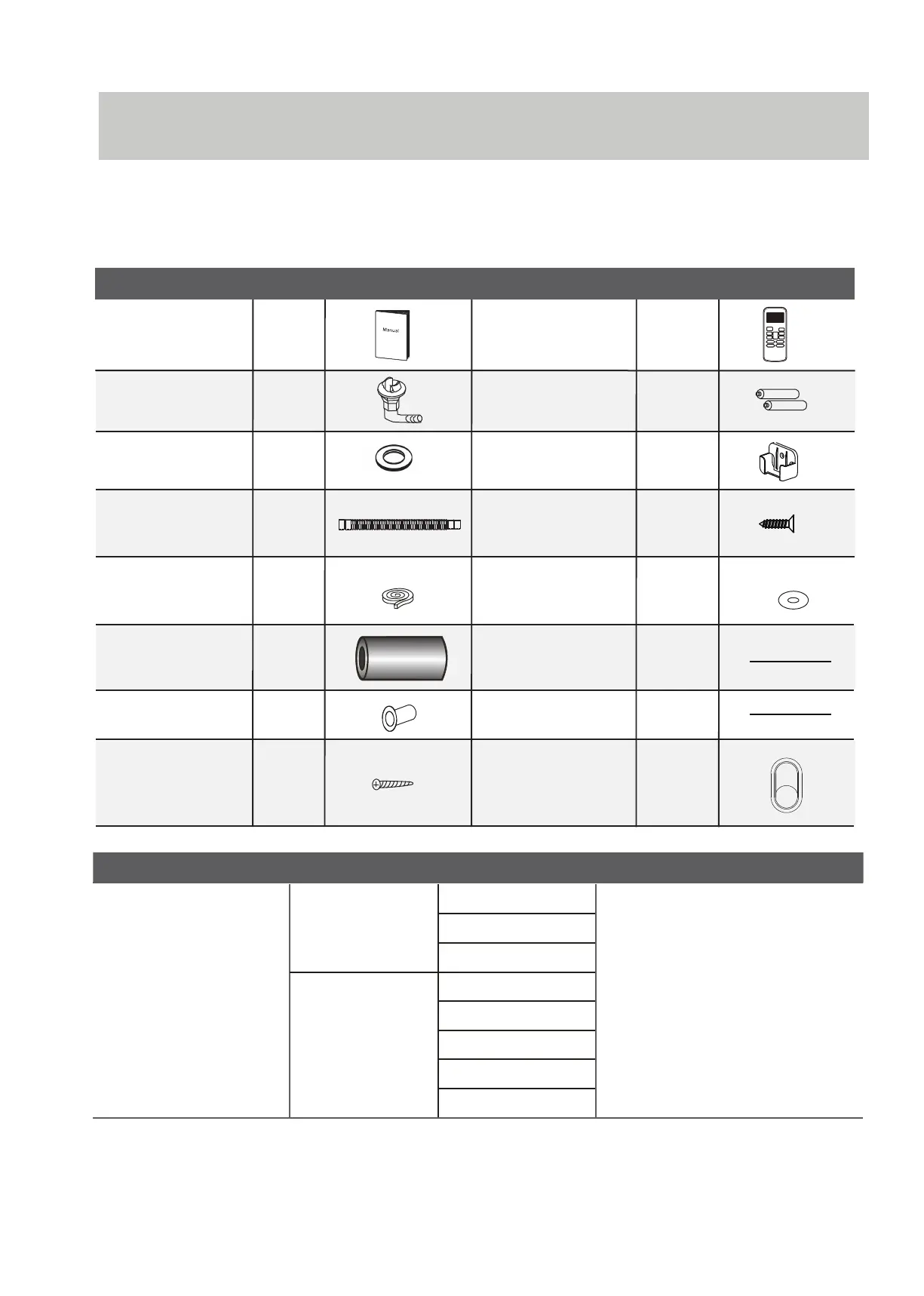 shock and fire, or cause the equipment to fail. The items are not included with the air conditioner must