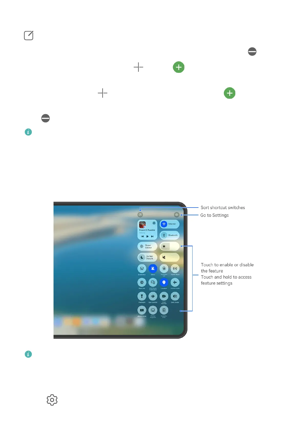 • Edit shortcut switches: Hold and drag a shortcut switch to relocate it, or tap to hide