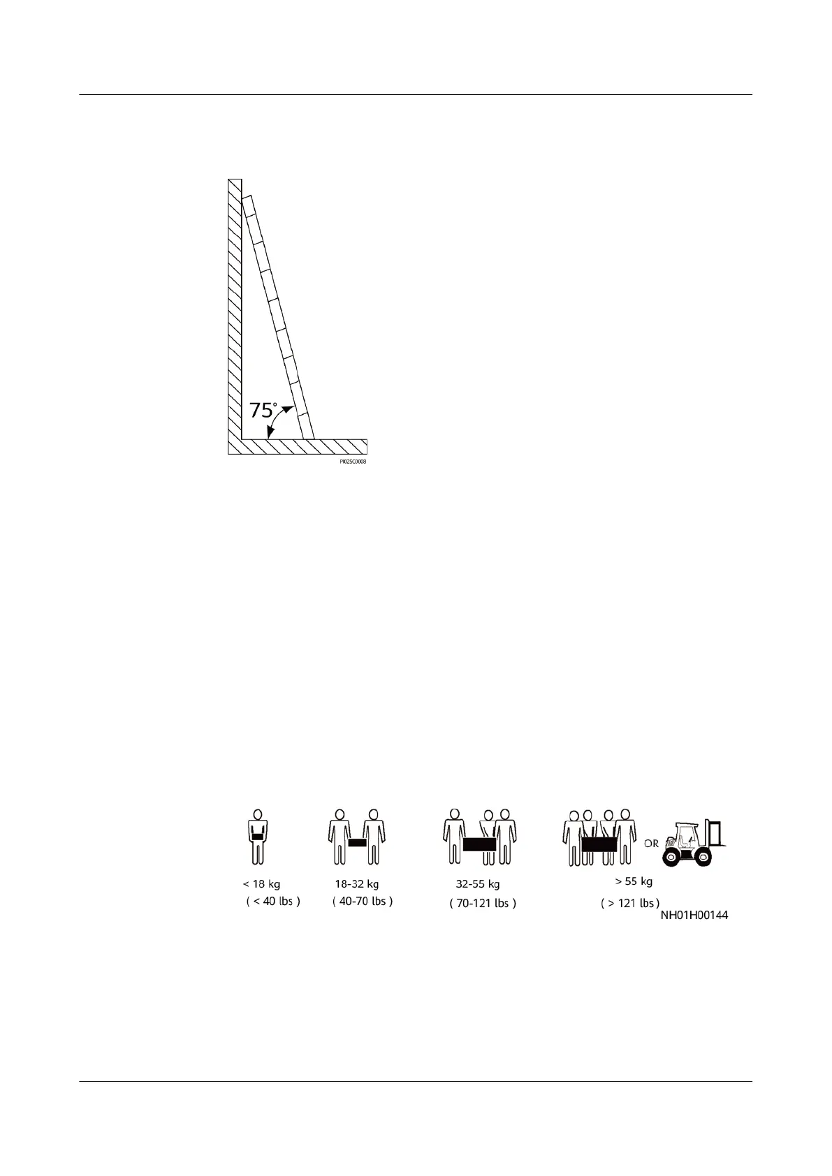 ● Ensure that the ladder is securely positioned. The recommended angle for a