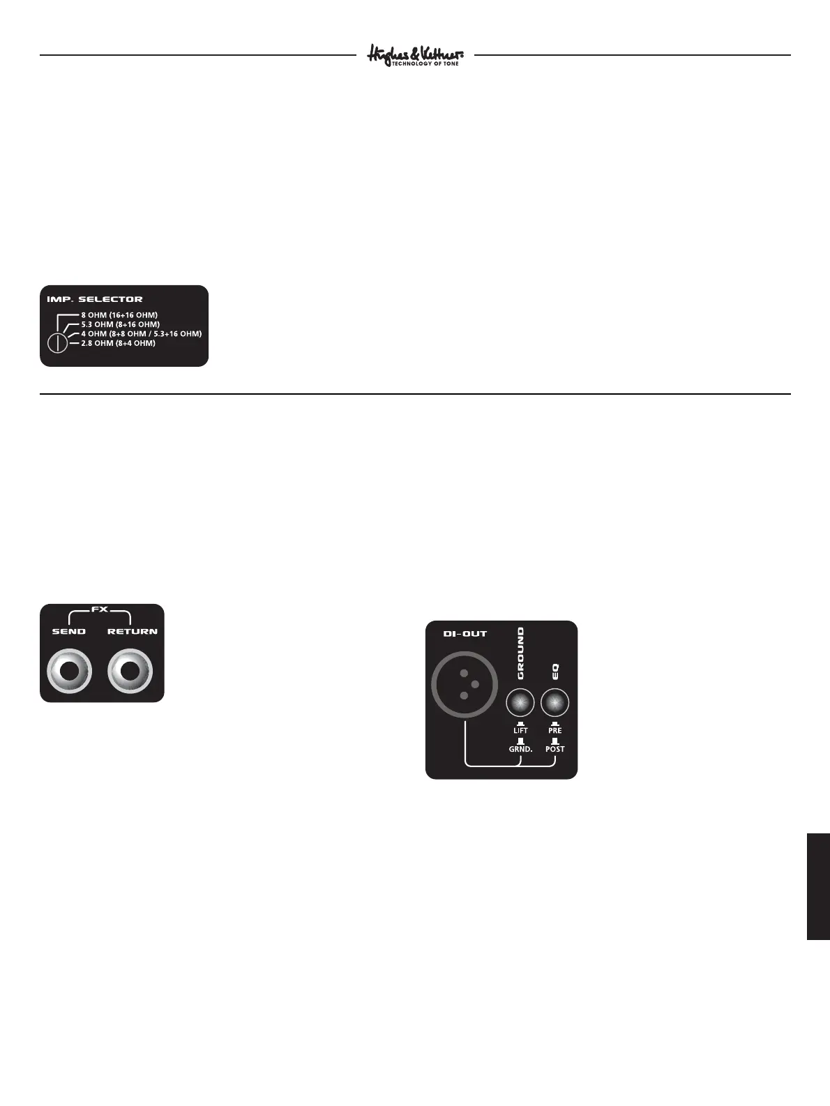 DI-Out dalla massa dell’amplificatore (Groundlift). Questo elimina