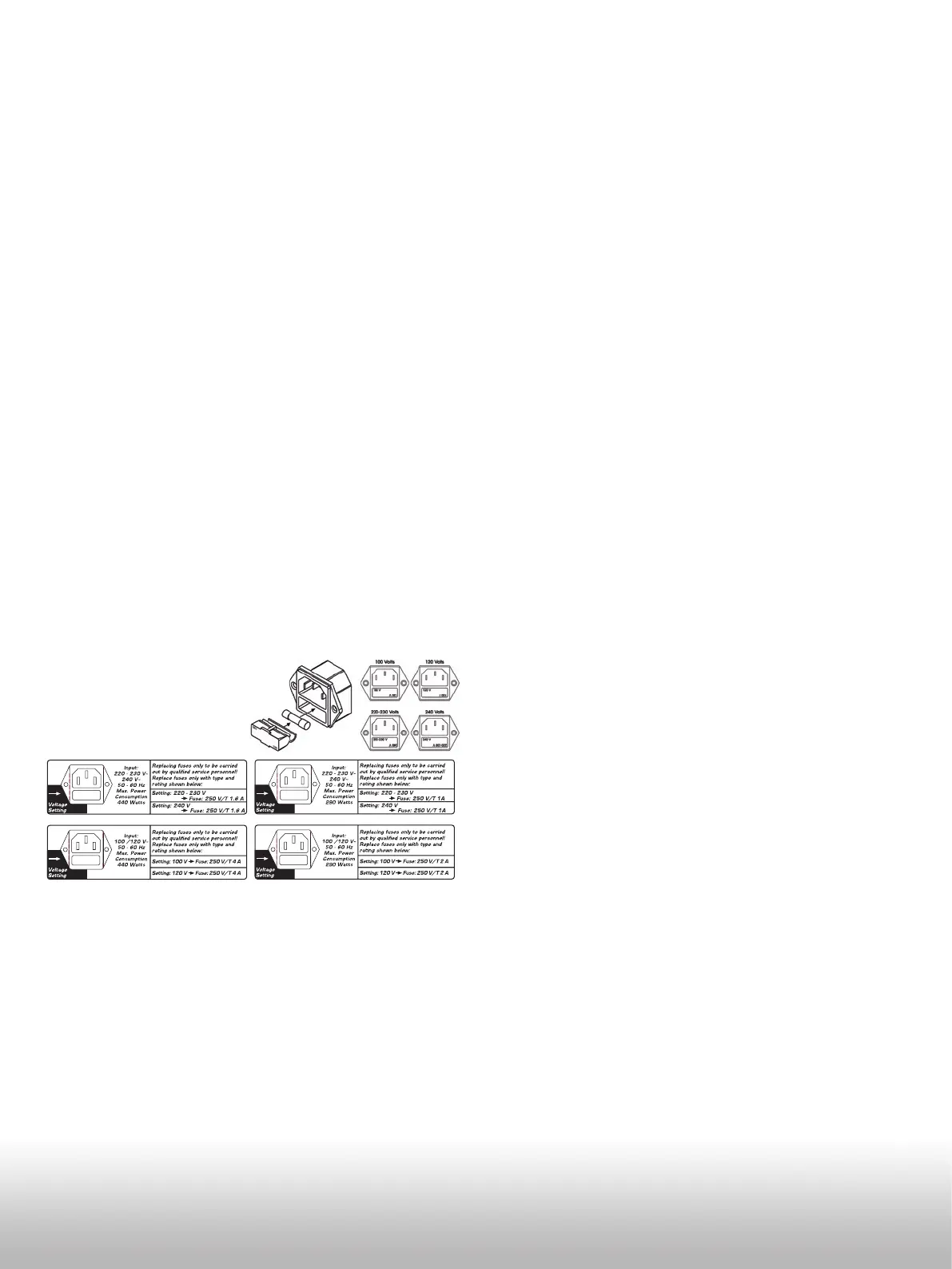 El ajuste de tensión y el cambio de los fusibles deben ser realizados exclusivamente
