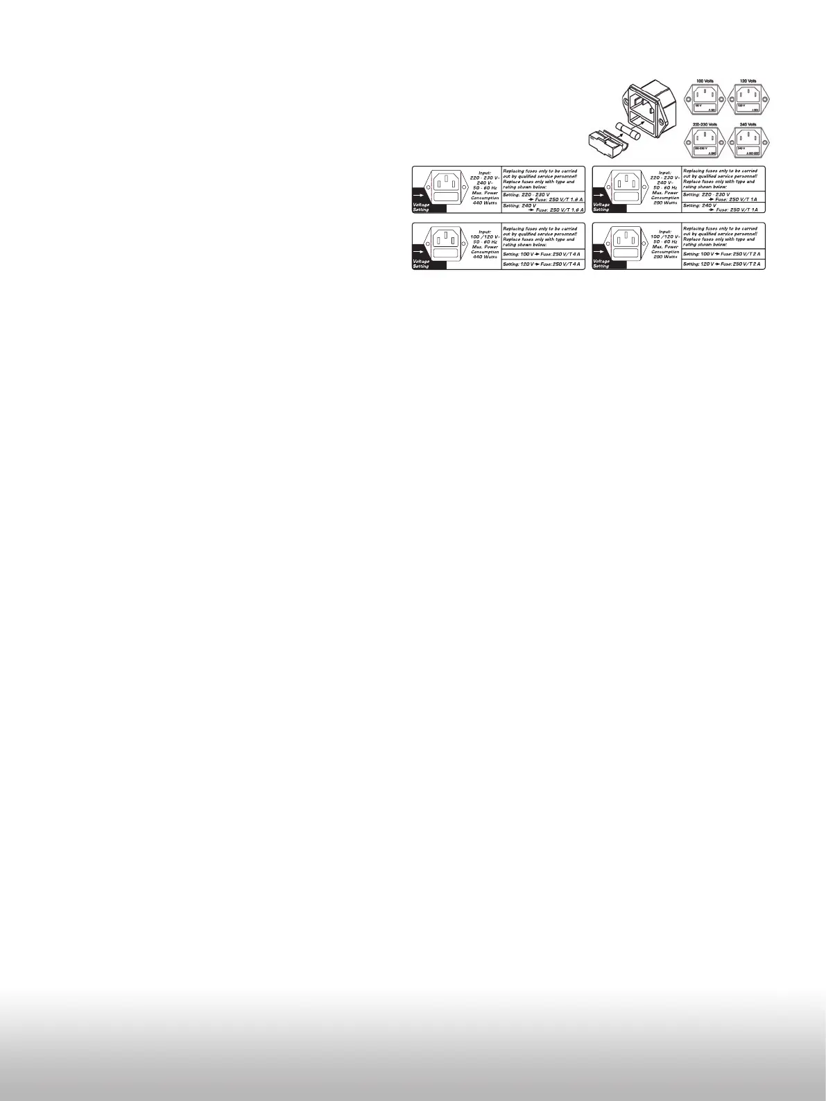 • Non far lavorare mai l’ampli con tensioni di rete troppo alte o troppo basse. Se