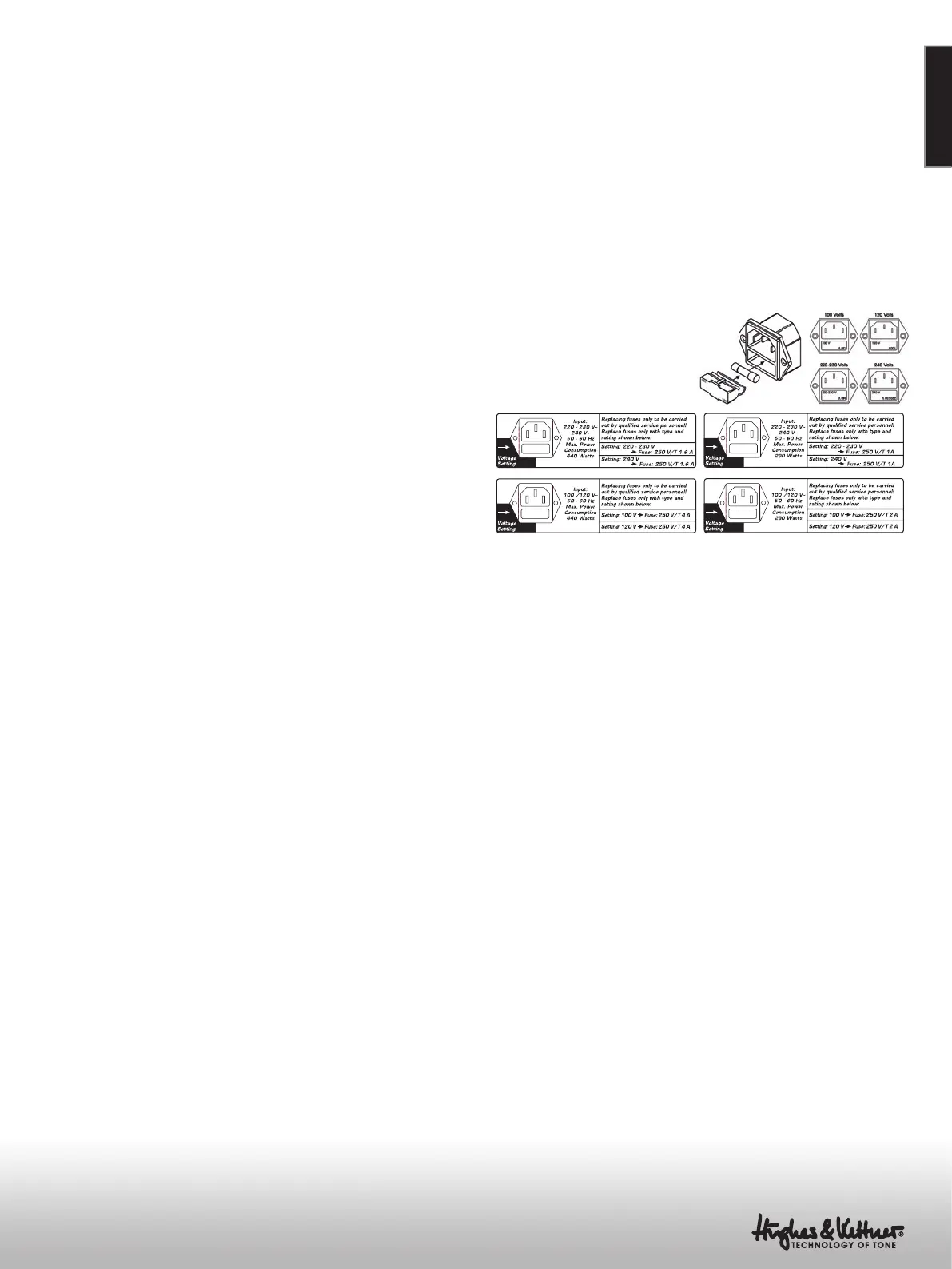 using the voltage selector integrated in the Mains socket. Ensure that the Mains