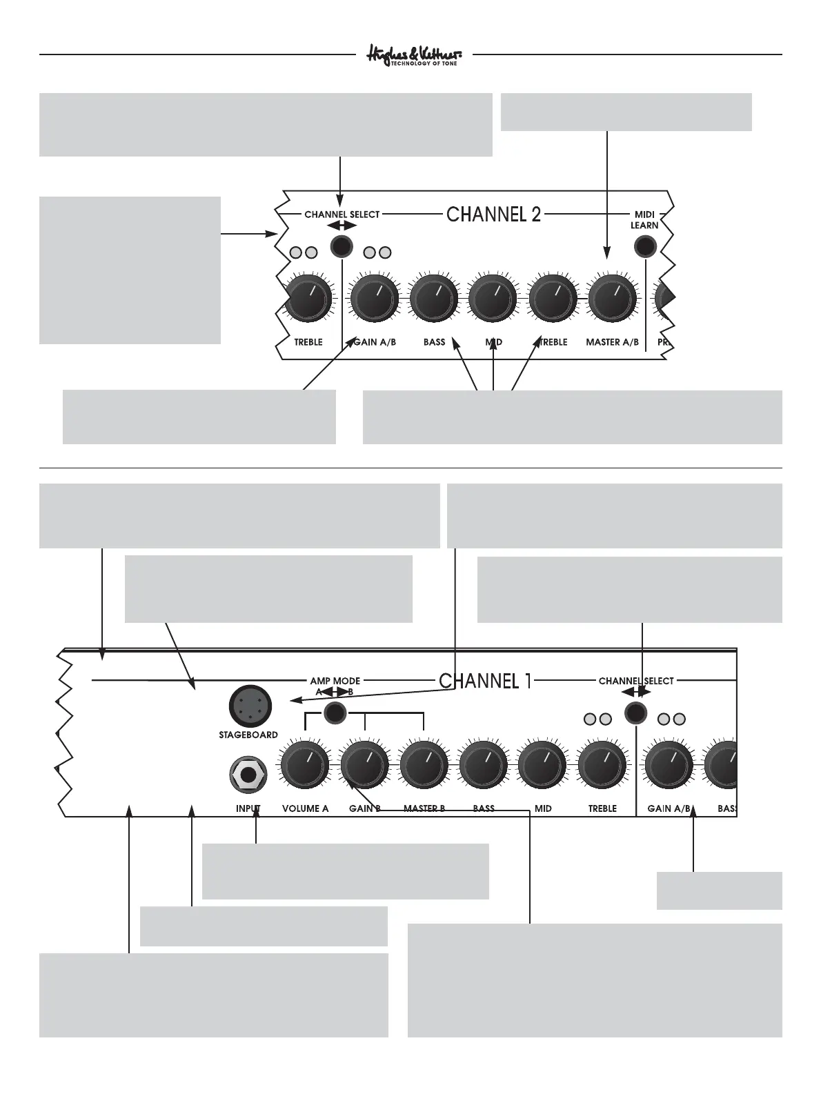 CHANNEL 2. Auch hier beeinflussen sich MID und TREBLE gegenseitig und
