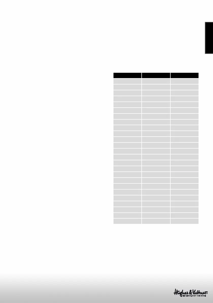 The table below shows Hughes & Kettner tube
