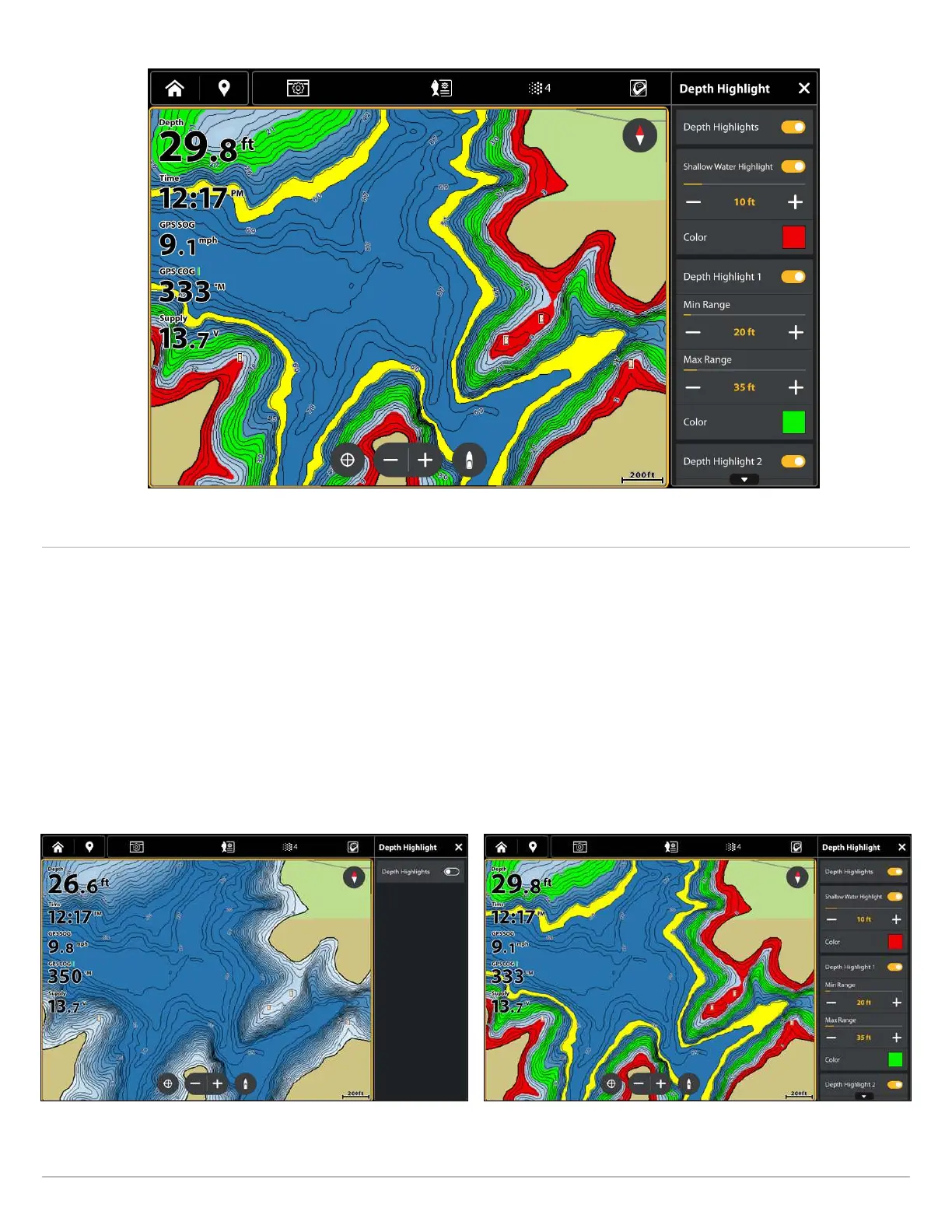 2. With depth highlights turned on, set the depth range for Depth Highlight 1 by selecting Min Range or Max Range.