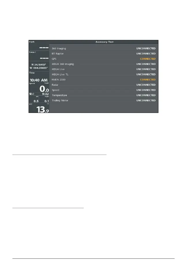 Use the Accessory Test View to review GPS and NMEA 2000 connection.