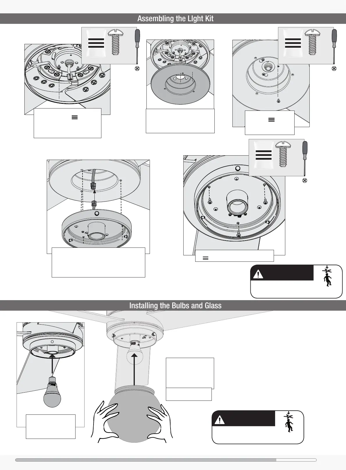 Ceiling Bracket Downrod Hanging Fan Wiring Canopy Blades Light Bulbs/Glass Remote