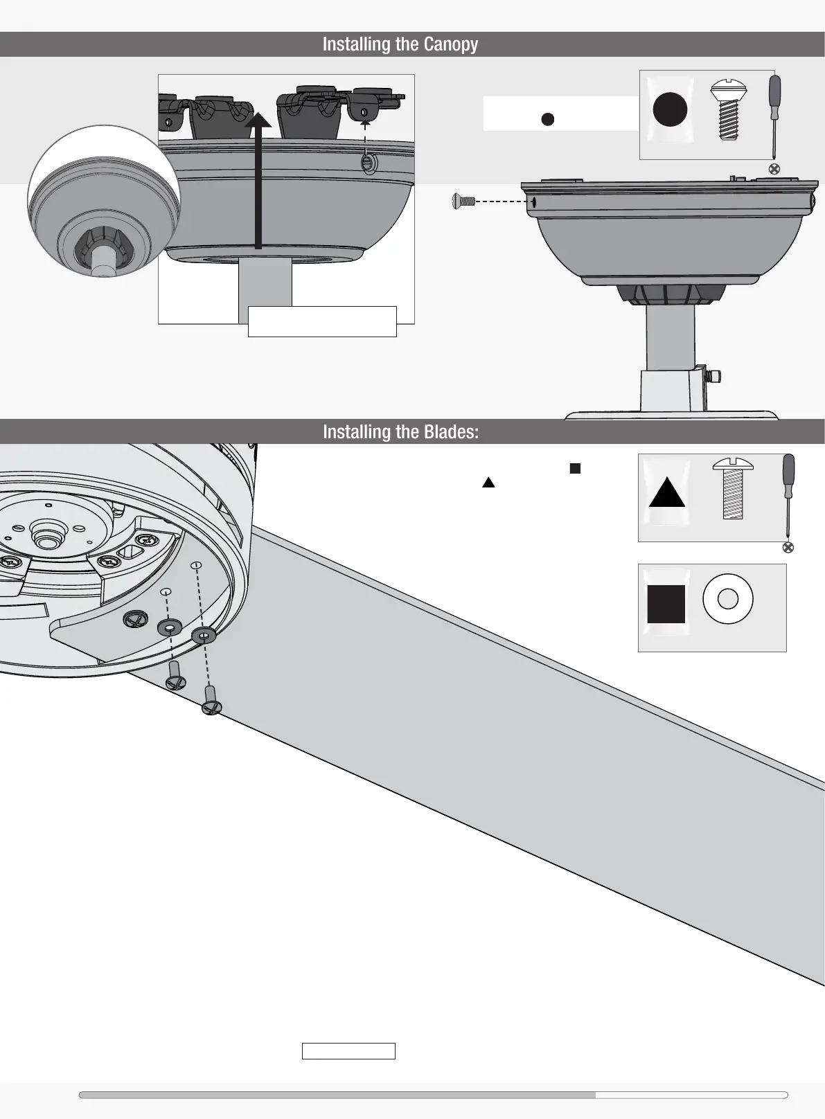 Attach each blade to a blade iron using the blade washers, found in the hardware