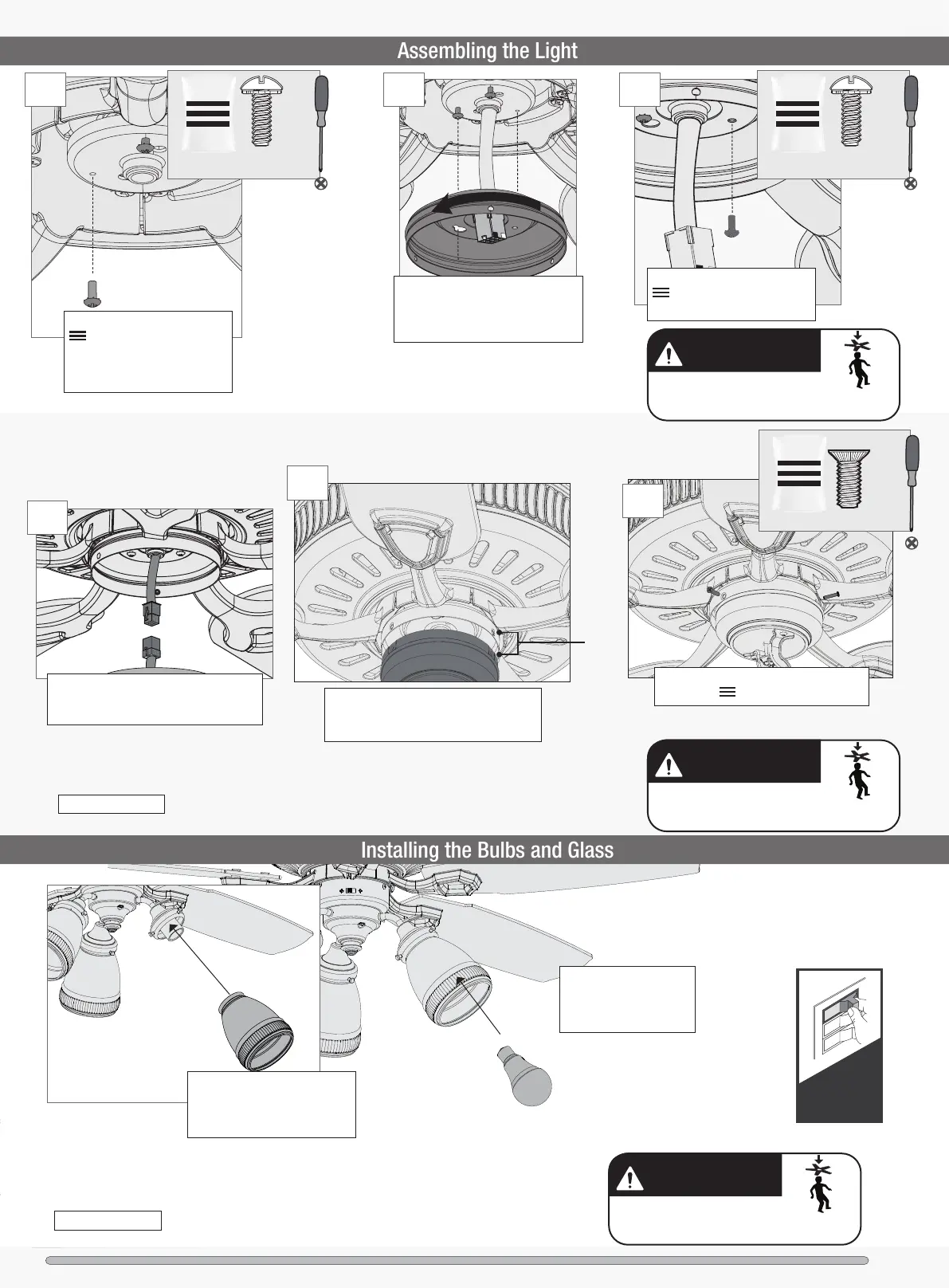 Ceiling Bracket Downrod Hanging Fan Wiring Canopy Blades Light Bulbs/Glass
