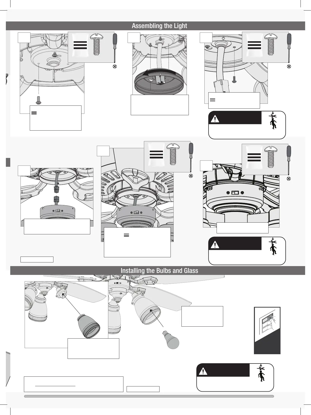 Ceiling Bracket Downrod Hanging Fan Wiring Canopy Blades Light Glass/Bulbs