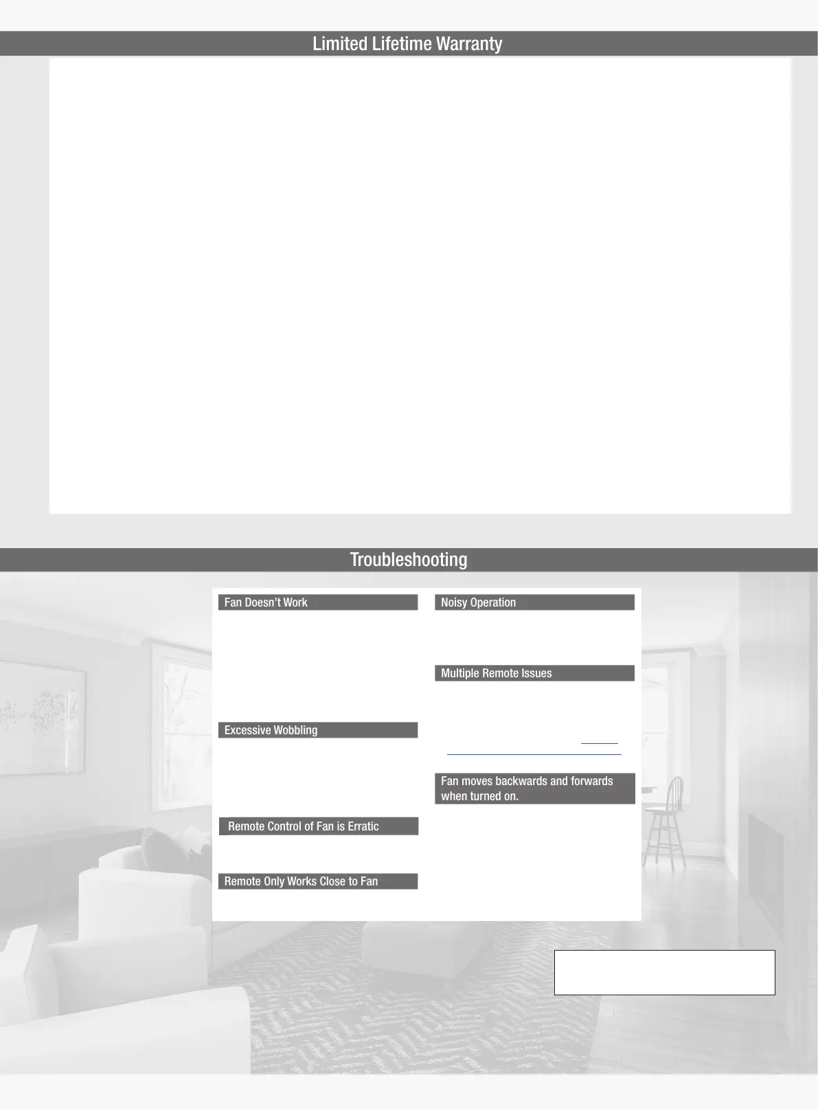 There is no warranty for light bulbs; remote control batteries; fans purchased or installed