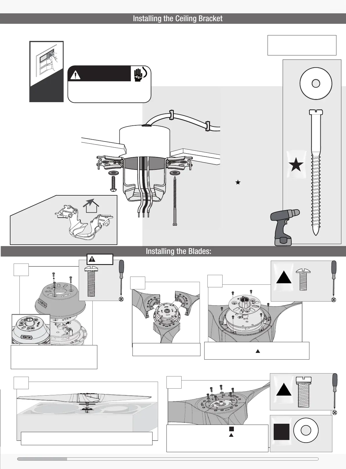 bracket prior to installation. Only use the provided Hunter ceiling bracket that came in your fan’s box.