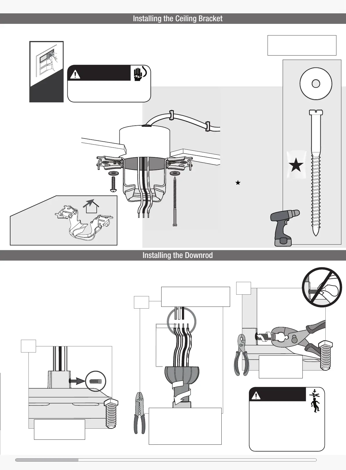 bracket prior to installation. Only use the provided Hunter ceiling bracket that came in your fan’s box.