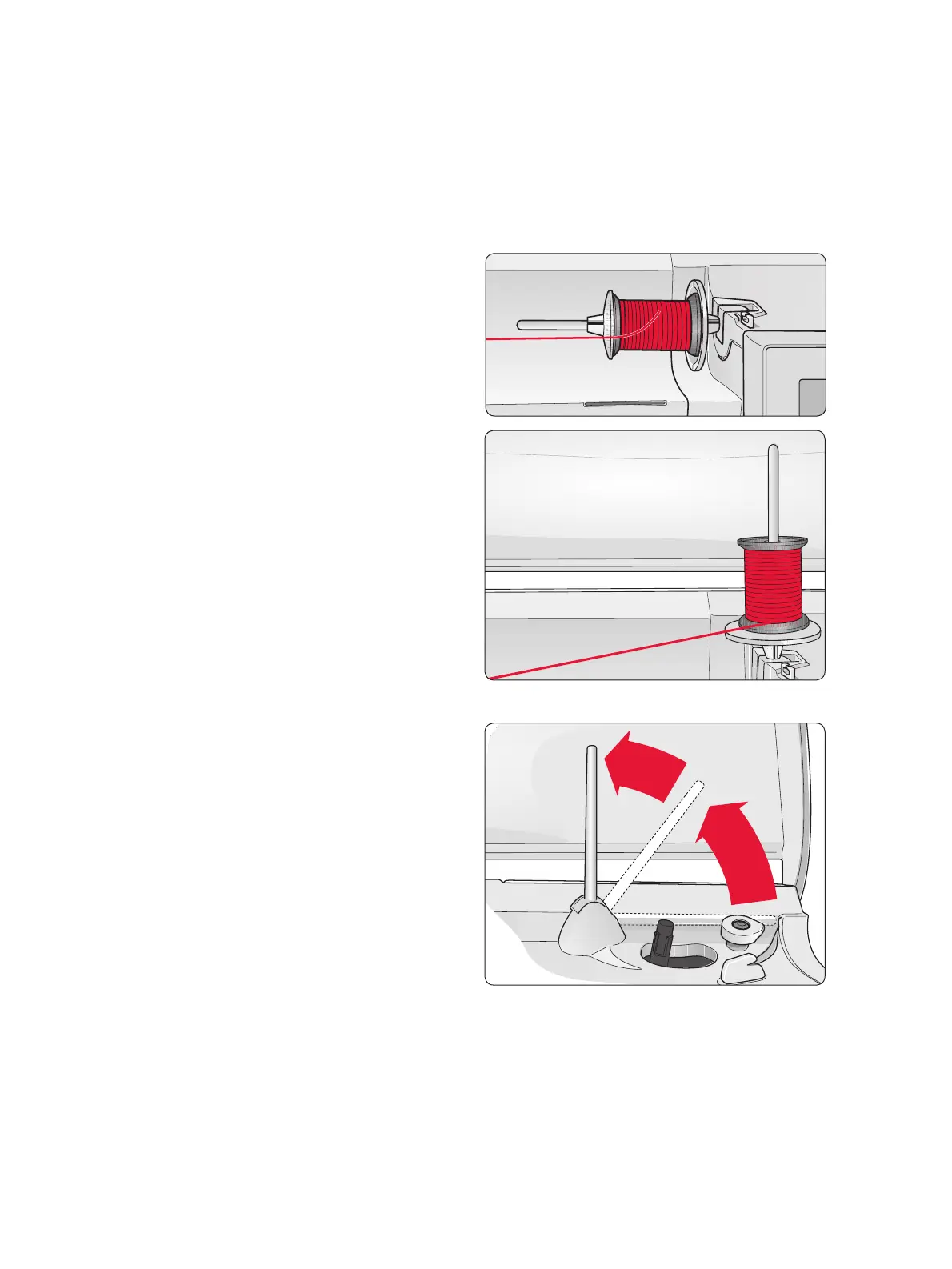 Breng de garenpen omhoog en helemaal naar rechts.