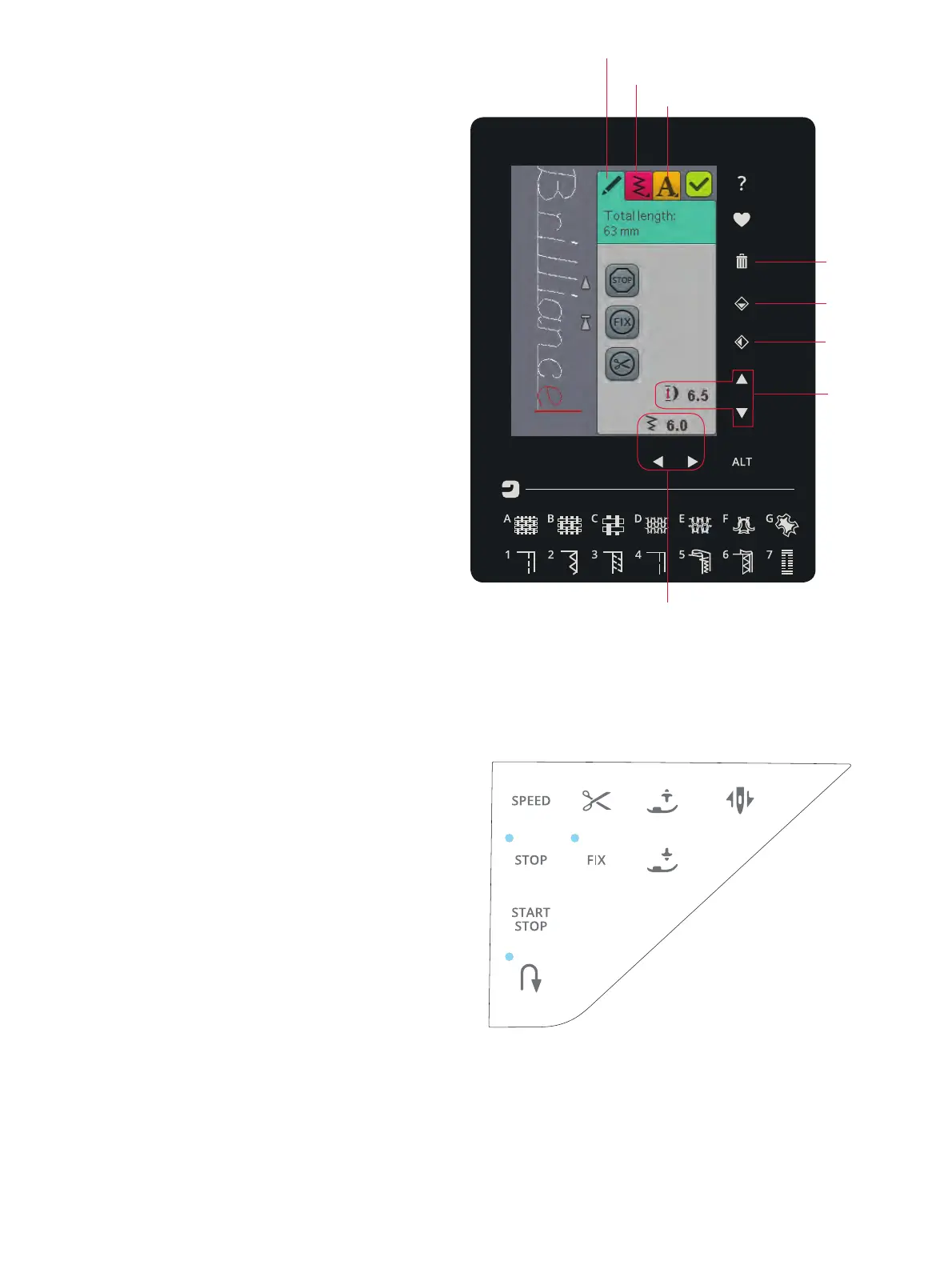 U kunt de geselecteerde steek spiegelen, de lengte en
