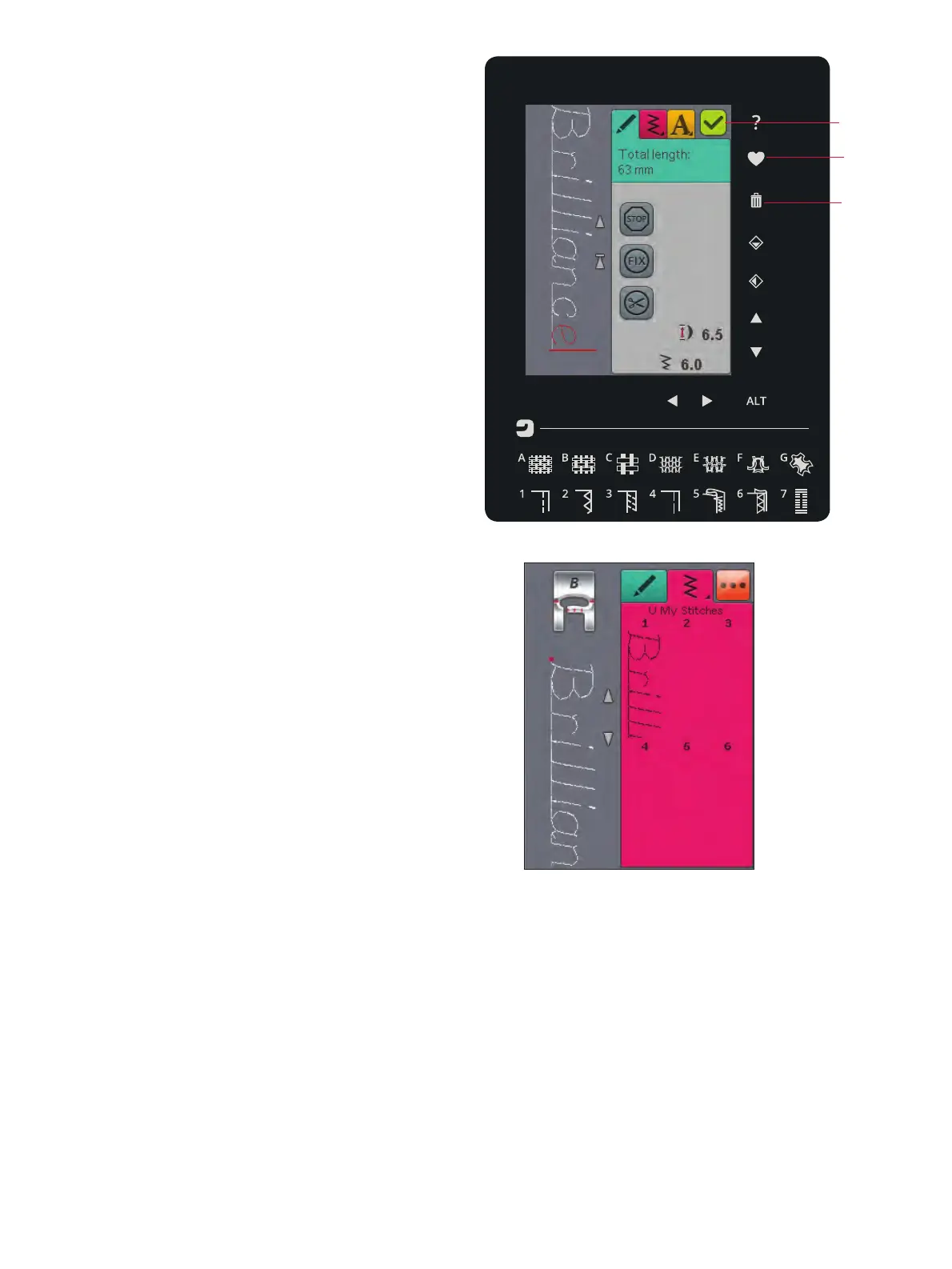 Als u klaar bent met uw steek, drukt u op het pictogram