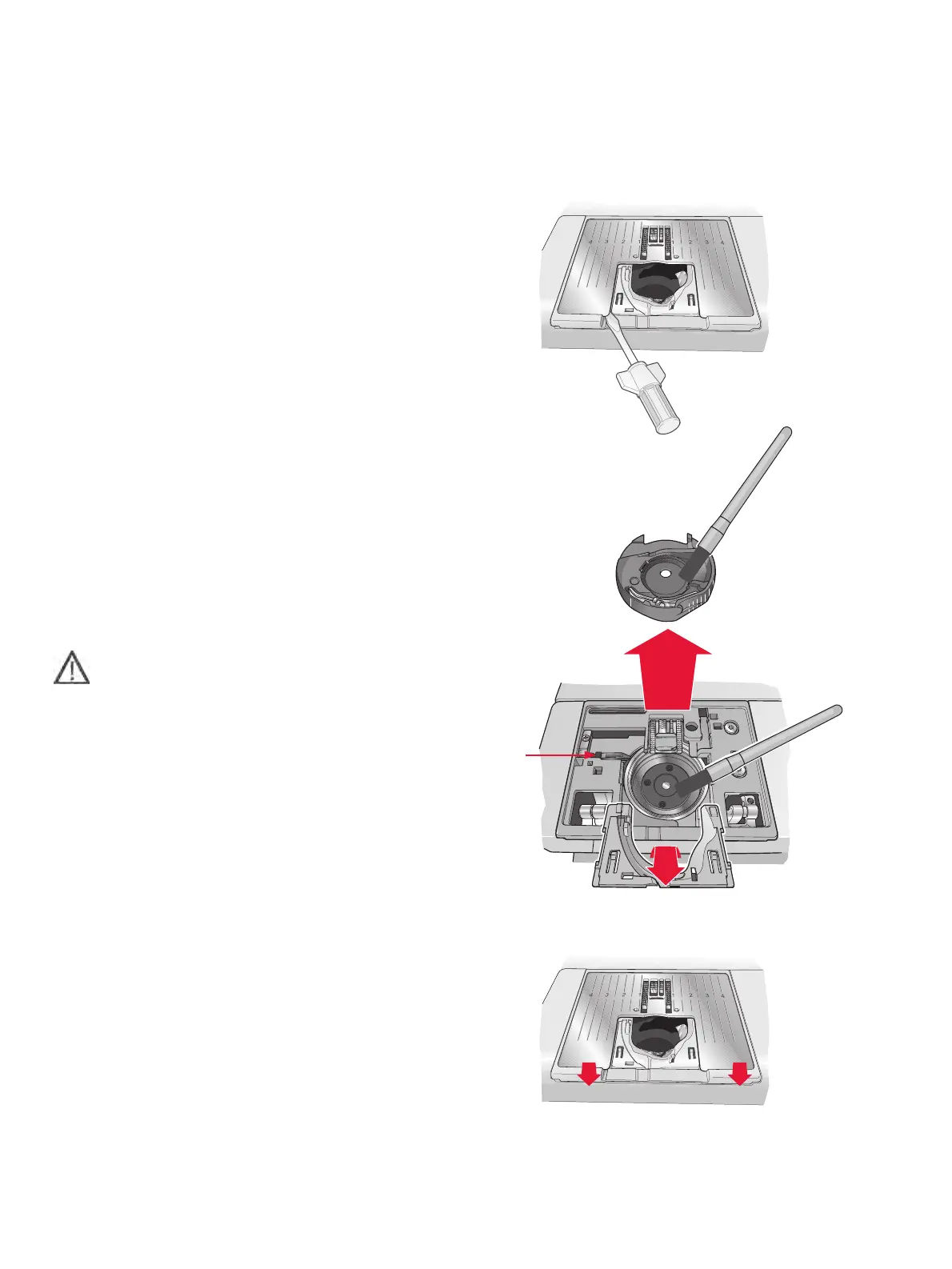 Verwijder de naaivoet en schuif het spoelhuisdeksel