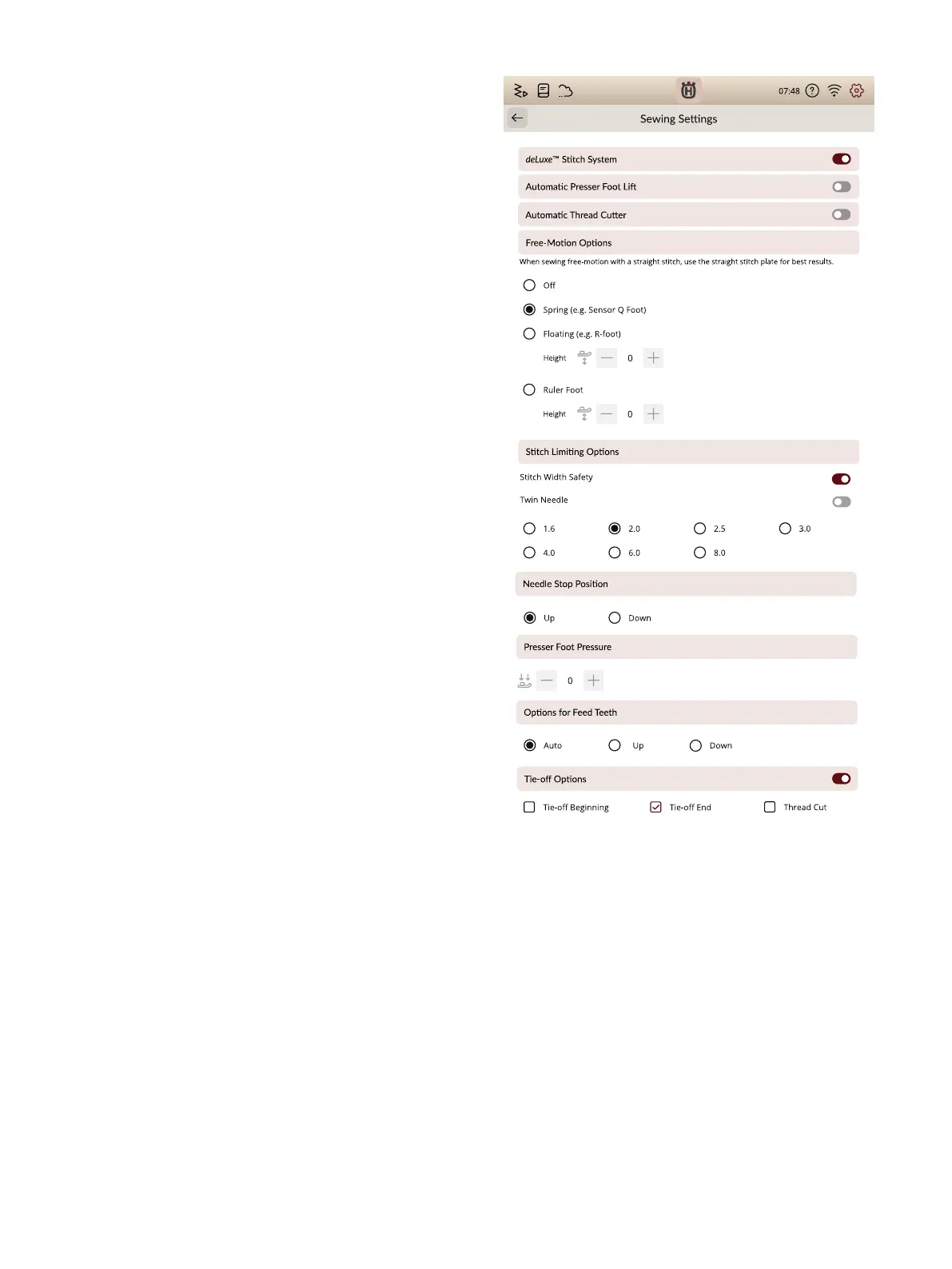 de naai-instellingen; kies in plaats daarvan een optie in de