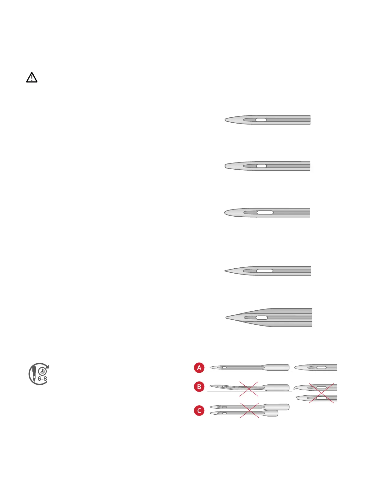Gebruik geen asymmetrische tweelingnaalden (C); uw