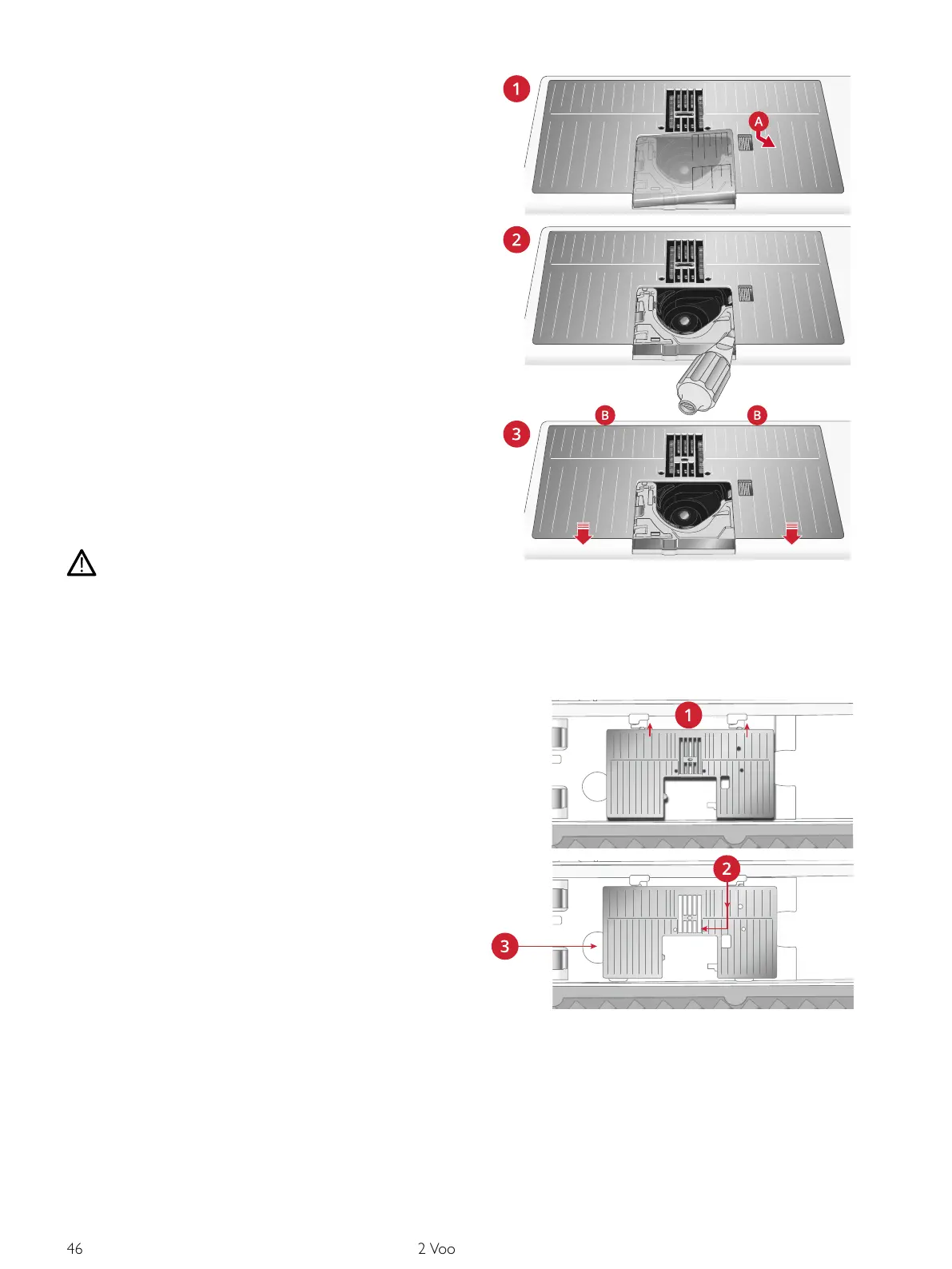 1. Verwijder de naaivoet. Open het spoelhuis met het