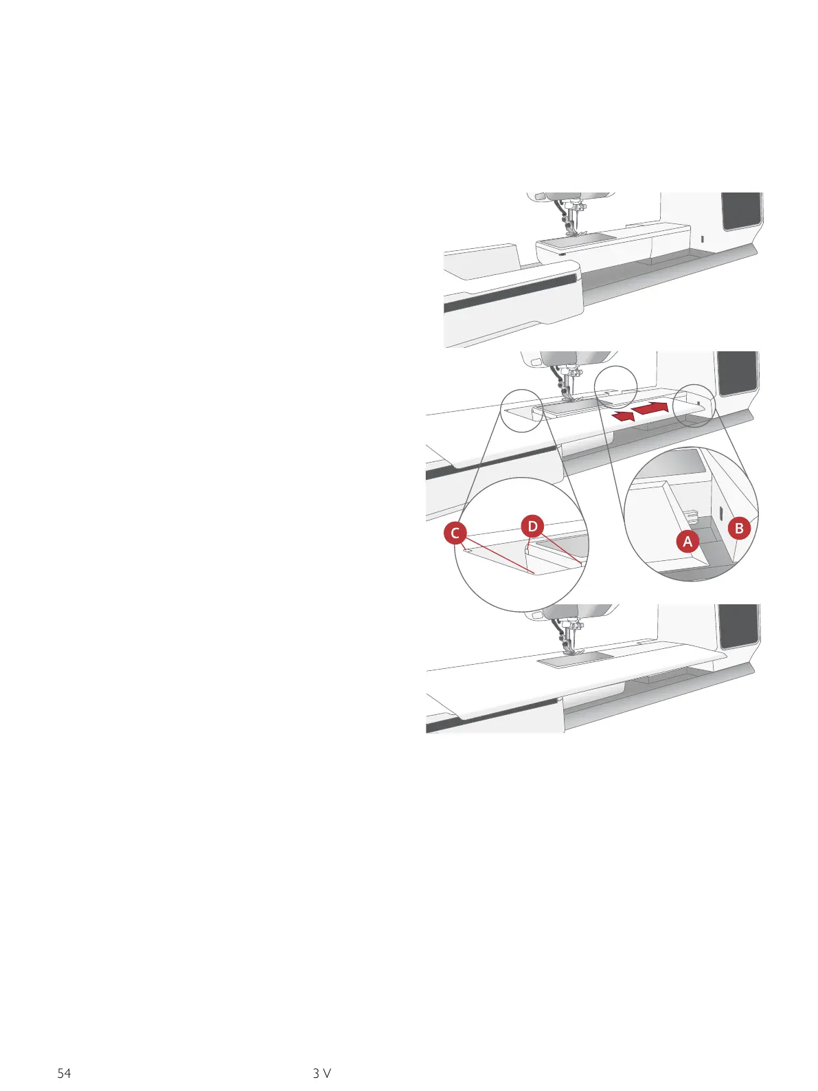 • Schuif de verlenging van de borduureenheid onder de