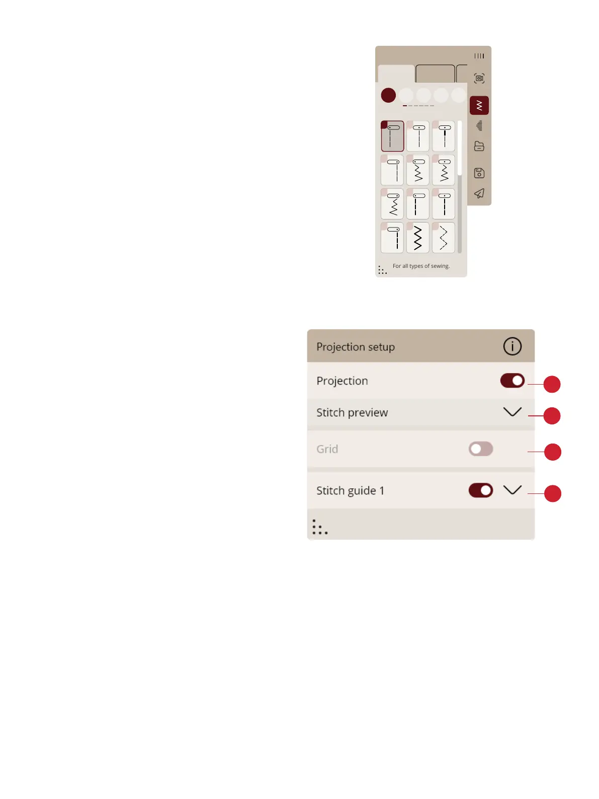 • u begeleiden bij het naaien, met een of twee geleidelijnen.