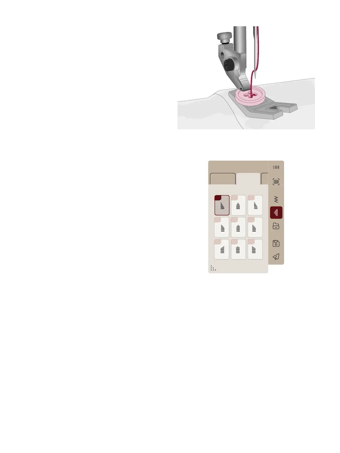 met uw naaimachine. Selecteer knoop aannaaien in de