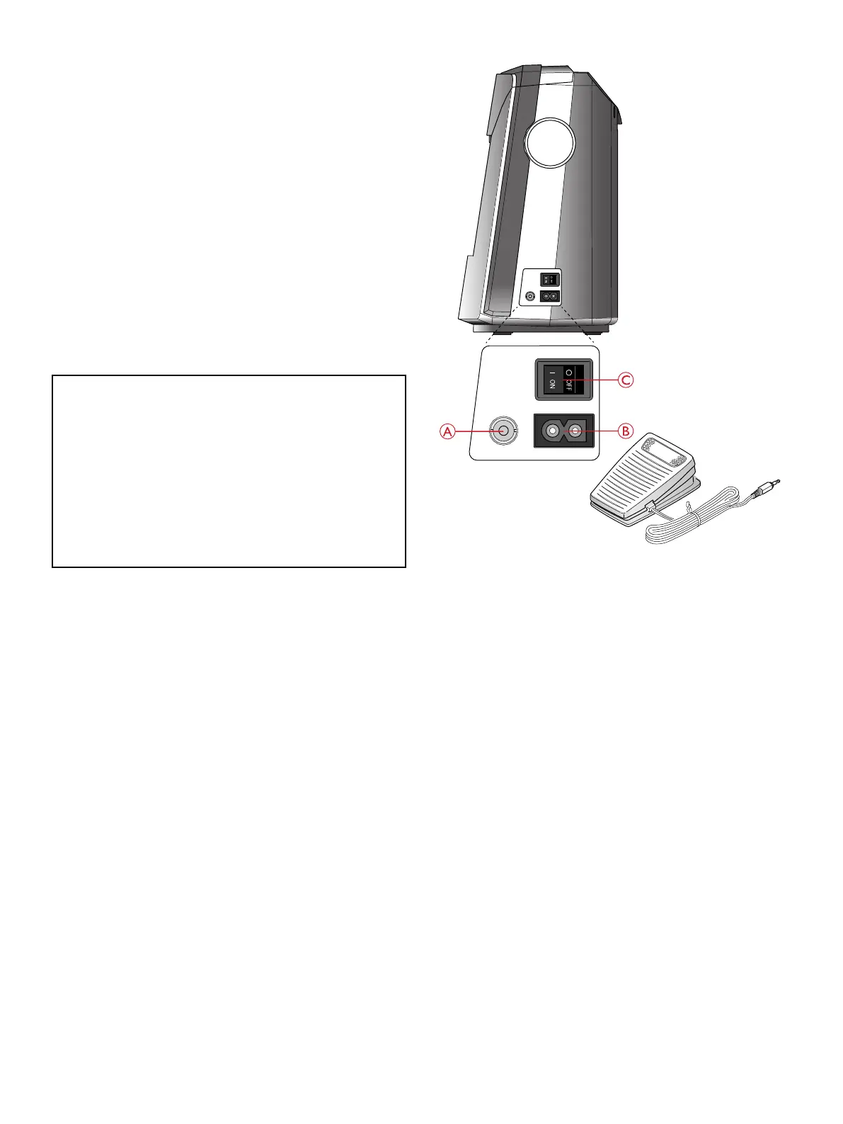 naaimachine op de stroomvoorziening moet aansluiten. Haal de stekker