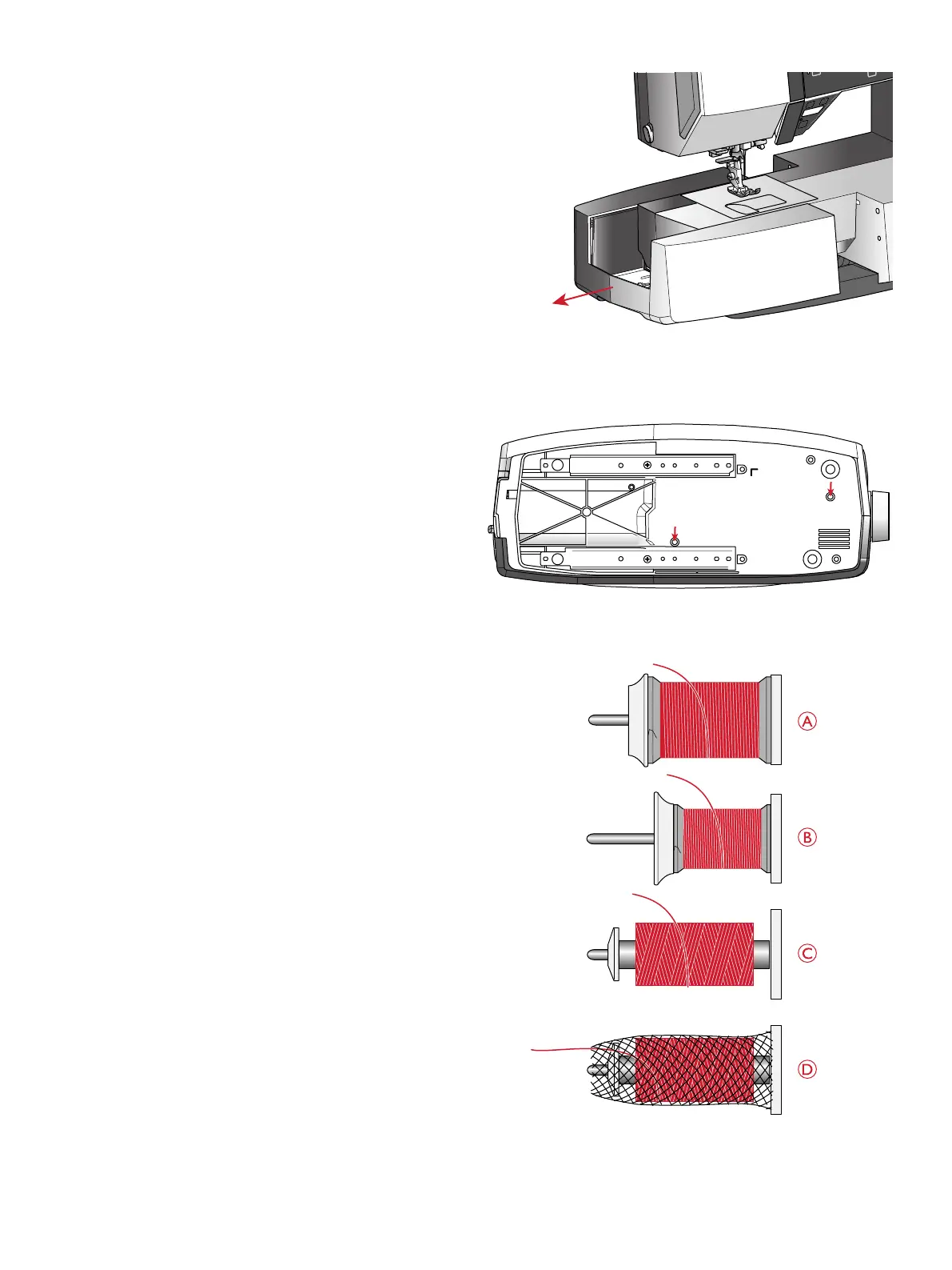 Plaats een vilten onderlegger en het klosje op de garenpen.